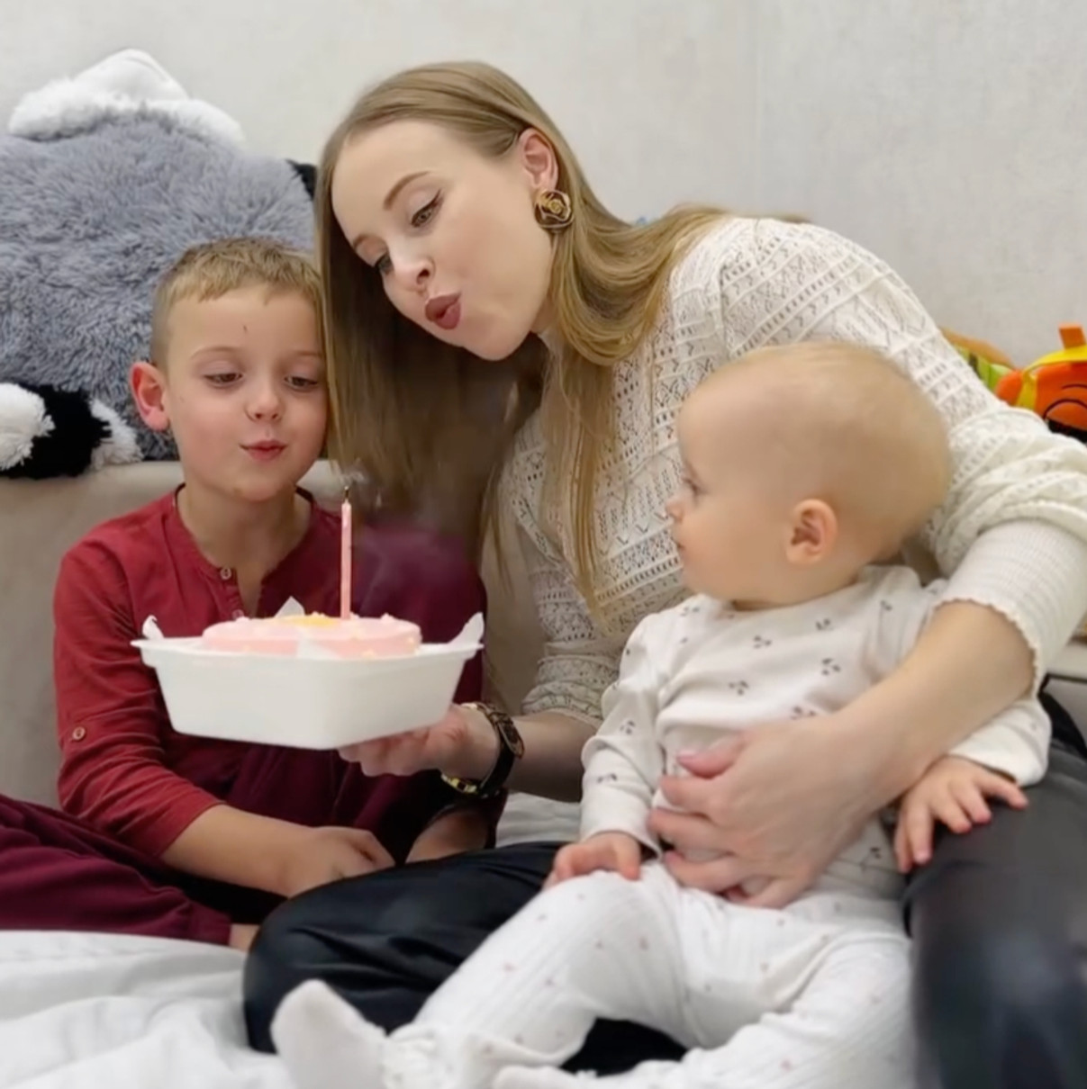 В Instagram знаменитість показала добірку фото і відео, на яких разом зі своїм сином, 6-річним Тимуром допомагала крихітці задувати свічку зі святкового тортика.