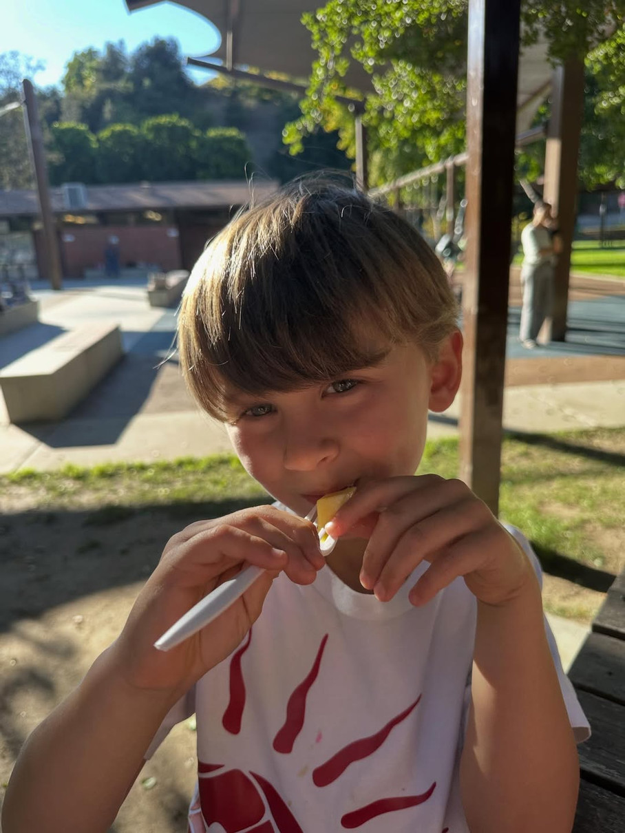 Болдуїн підготувала дітям перекус у вигляді фруктів для сонячної прогулянки
