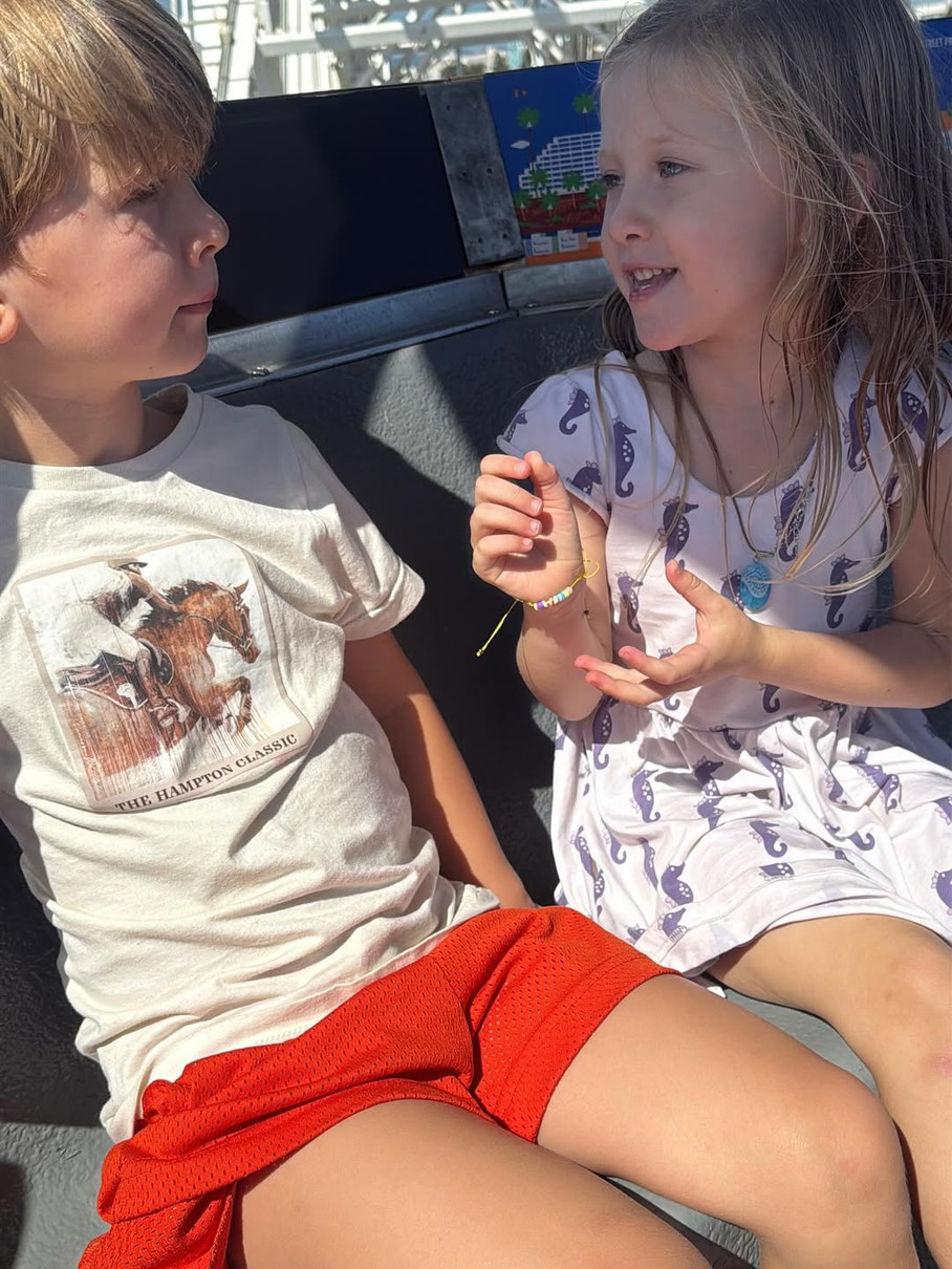 Хлопчик, схоже, дуже зацікавлений розмовою з молодшою сестричкою