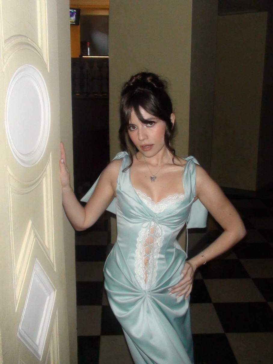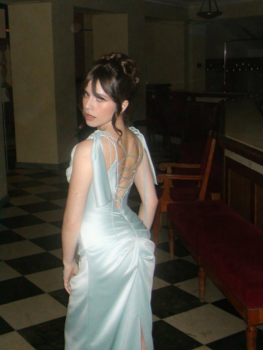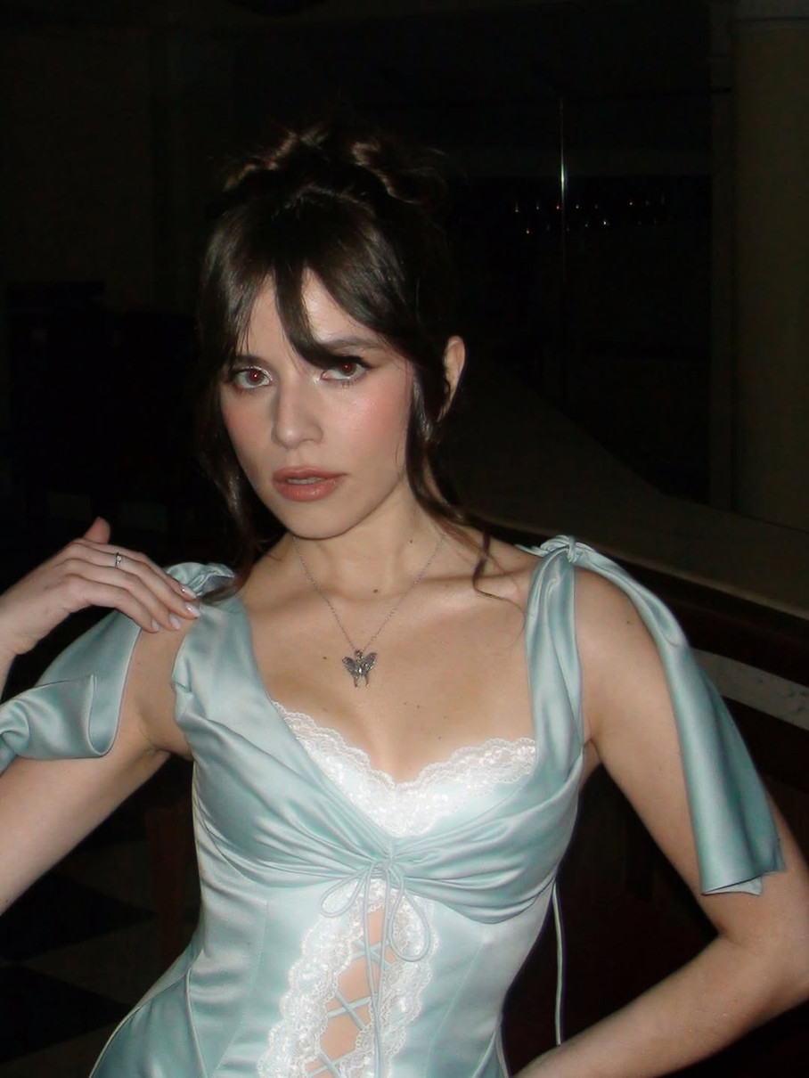 Тендітна Христина попозувала в ніжно-блакитному платті в будуарному стилі з пікантними шворками на спині та на талії спереду. Погляд співачки і звабно привідкриті губи зробили її образ ще більше спокусливим.