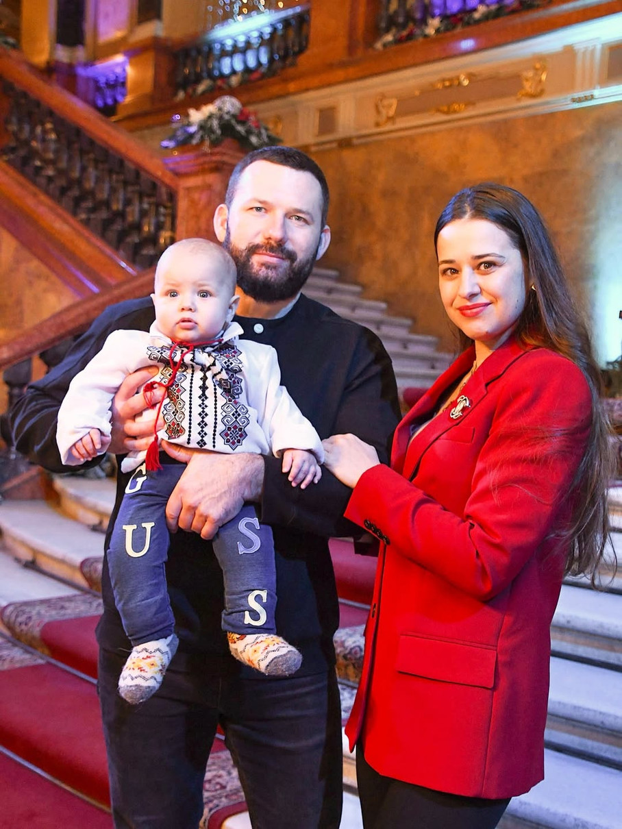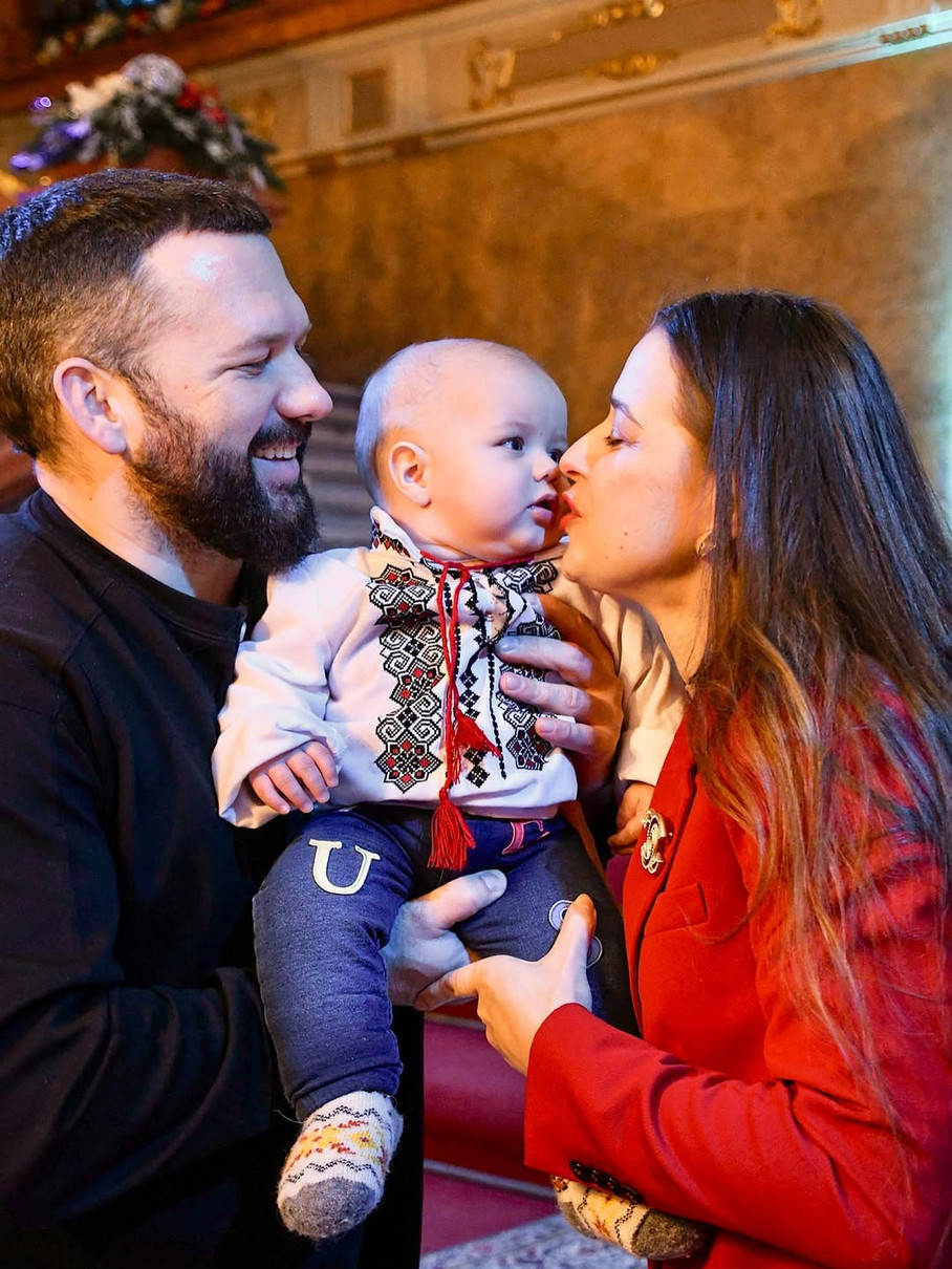 На світлинах, які вона опублікувала в Instagram, Ярослава з чоловіком позують на сходах Львівського оперного театру з малюком та цілують його у щічку.