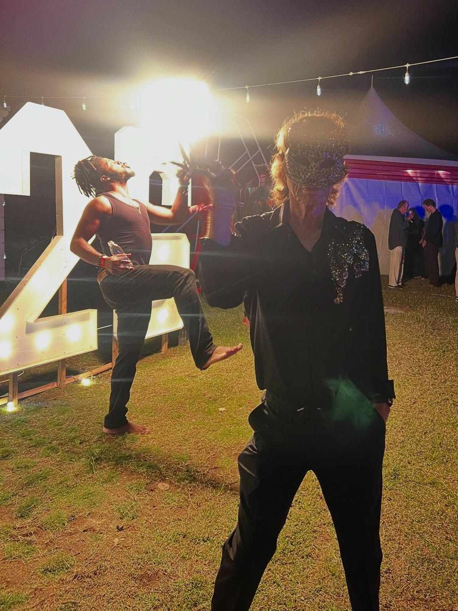 Тема святкування була циркова, тож парочка придумала собі відповідні луки. Сер Мік був дресированим (але це не точно) хижаком. Кілька фото він виклав у Instagram.