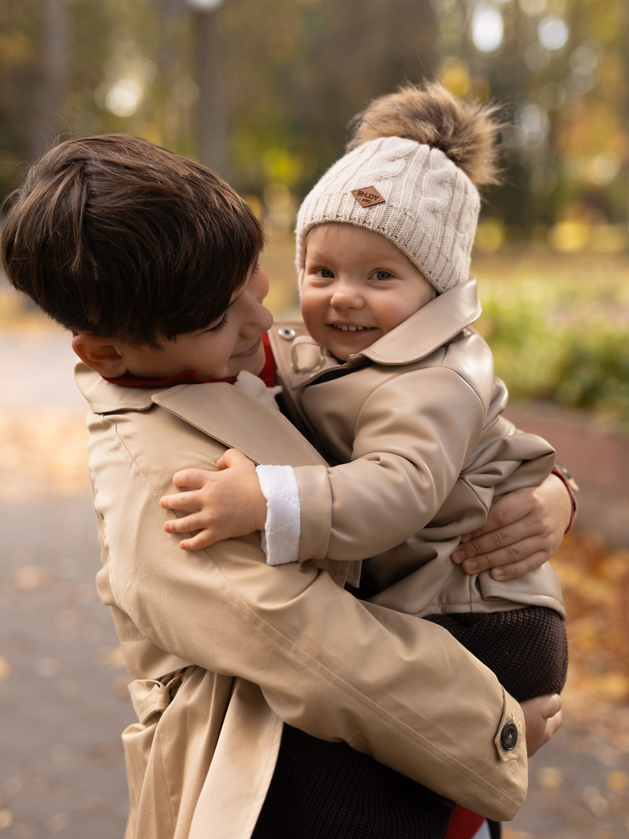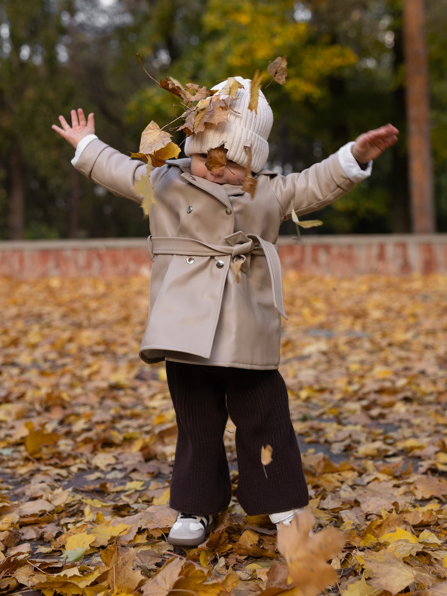 Для затишних кадрів у теплих тонах осені блогерка підготувала собі в синам з дочкою бежеві тренчі.