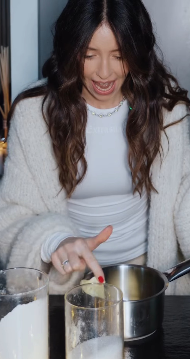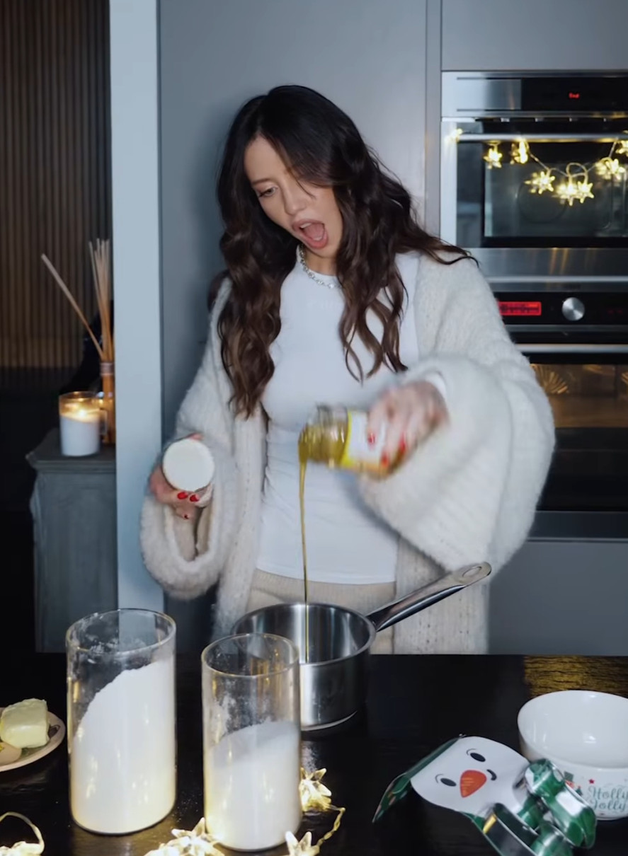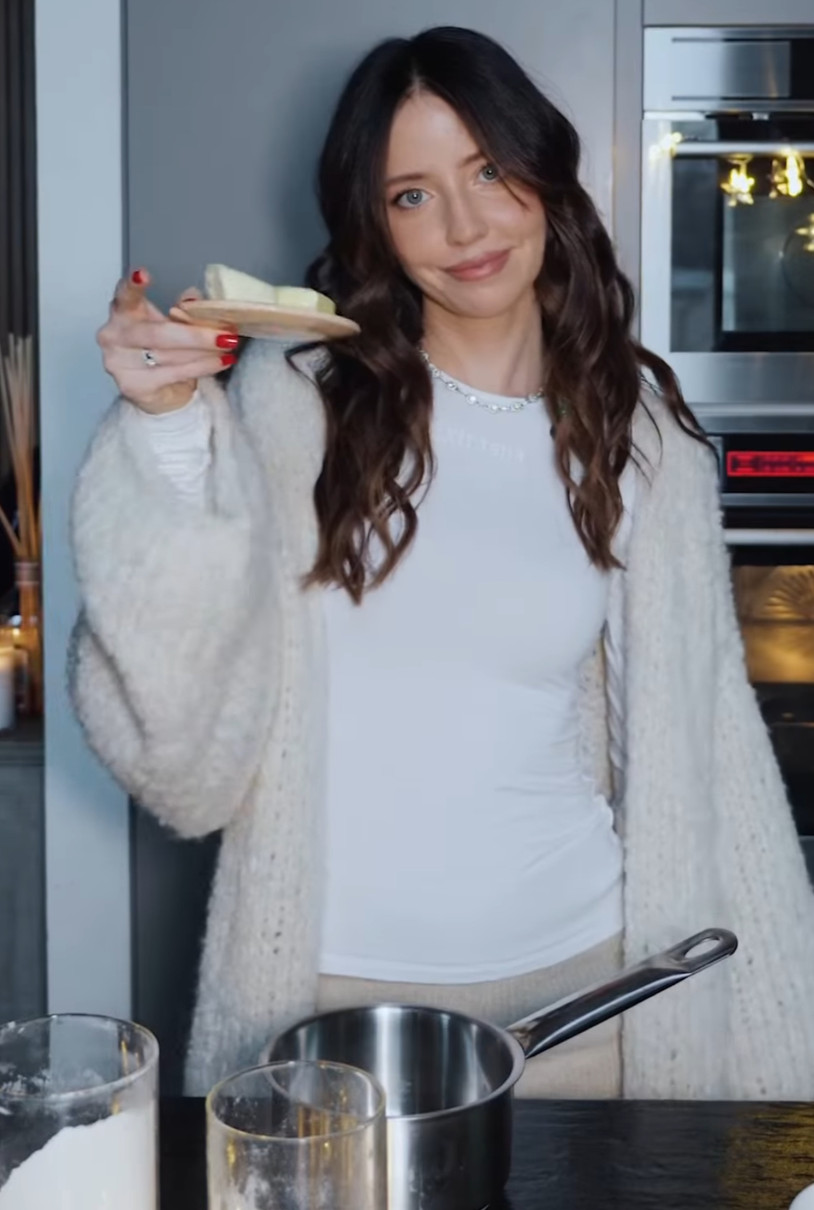 "Зазвичай тут готує мій чоловік, але сьогодні ця кухня моя. Якщо чесно, то буду робити це вперше, тому подивимося, чи вийде", – зізналася зірка на початку відео.