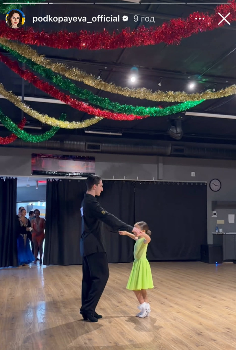 У своєму Instagram Лілія показала відео, як донька танцює у яскраво-зеленій сукні. Судячи з фото на п'єдесталі, дівчинка зі своїм партнером завоювали перше місце.