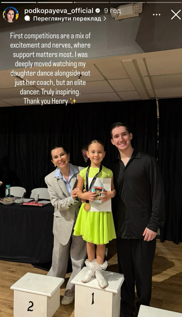 "Перші змагання - це суміш хвилювання та нервів, де підтримка має найбільше значення. Я була глибоко зворушена, спостерігаючи, як моя дочка танцює не тільки зі своїм тренером, але й з елітним танцівником. По-справжньому надихає. Дякую, Генрі", - написала Подкопаєва.