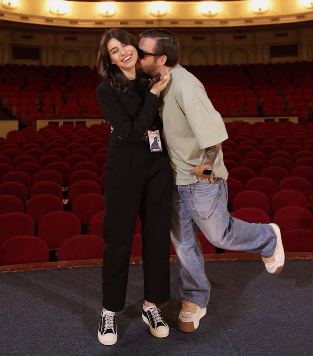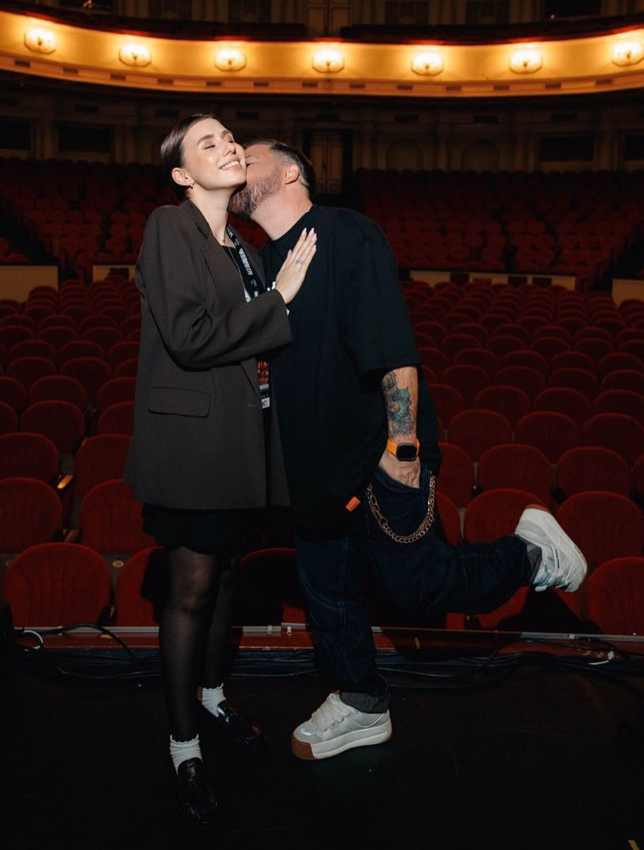 У себе в Instagram знаменитість запостив романтичний знімок з коханою, на якому ніжно цілує її в шию на тлі порожньої зали.