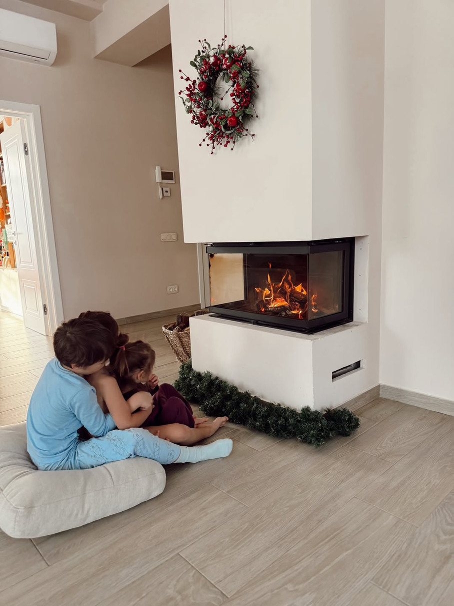 Світлана показала своїх трьох дітей - 7-річного Івана, 5-річну Марію та 2,5-річну Поліну - на прогулянці з санчатами, похвалилася своїми помічницями на кухні та дитячою гармонією коло каміна.