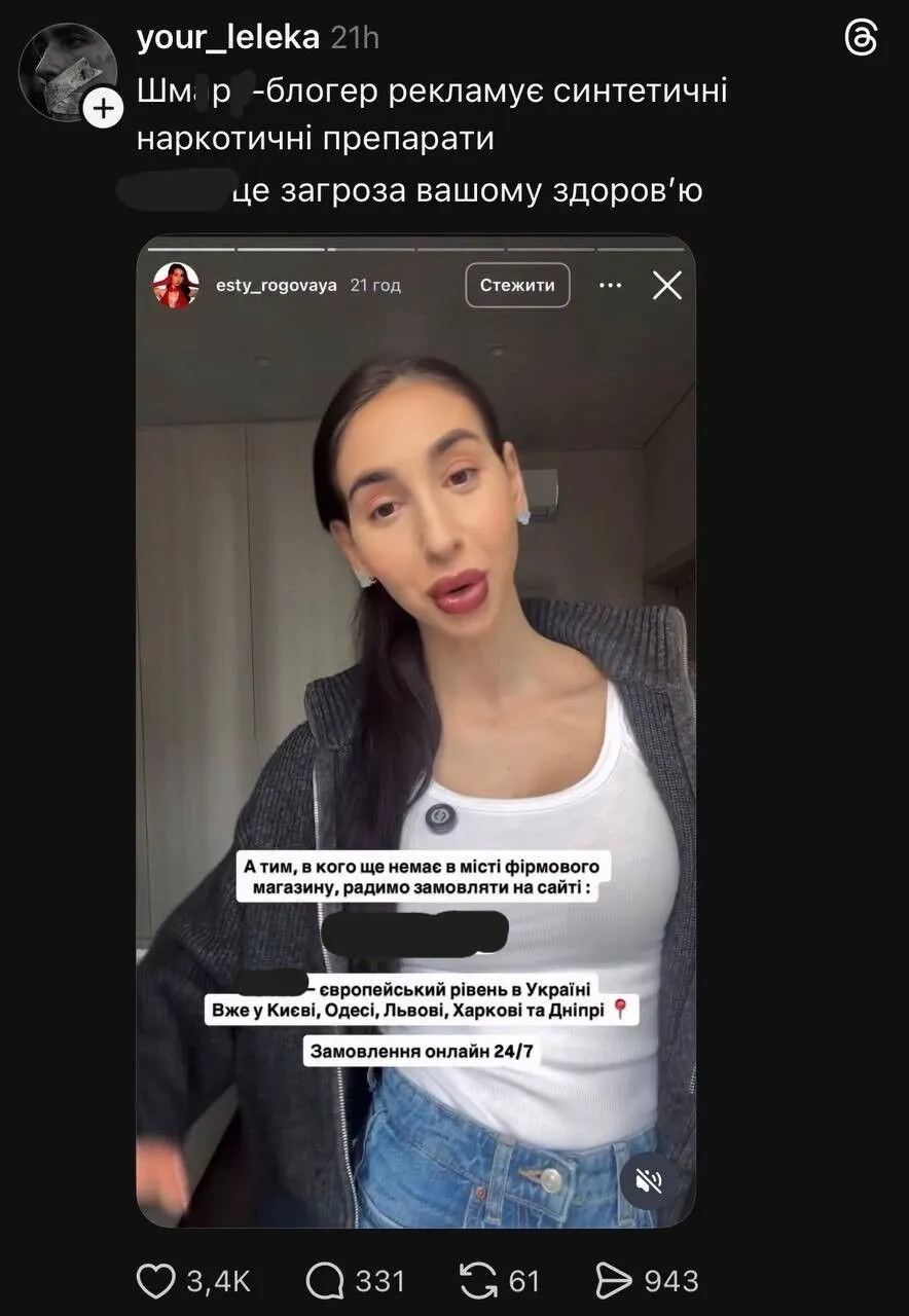 Окрім Тараса Цимбалюка, під критику потрапила й блогерка Есті Рогова, яка також рекламувала відповідний "сервіс". Вона відреагувала на зауваження аудиторії, перепросивши підписників та зазначивши, що не перевірила рекламодавця належним чином.
