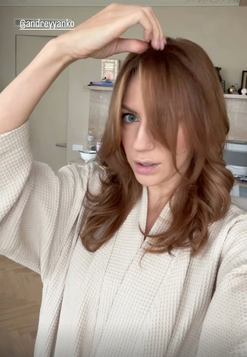 В Instagram знаменитість, яку фанати звикли бачити білявкою, постала з теплим мідним відтінком пасом. Леся додала, що волосся виглядає трохи темним, але воно має швидко "вимитися":