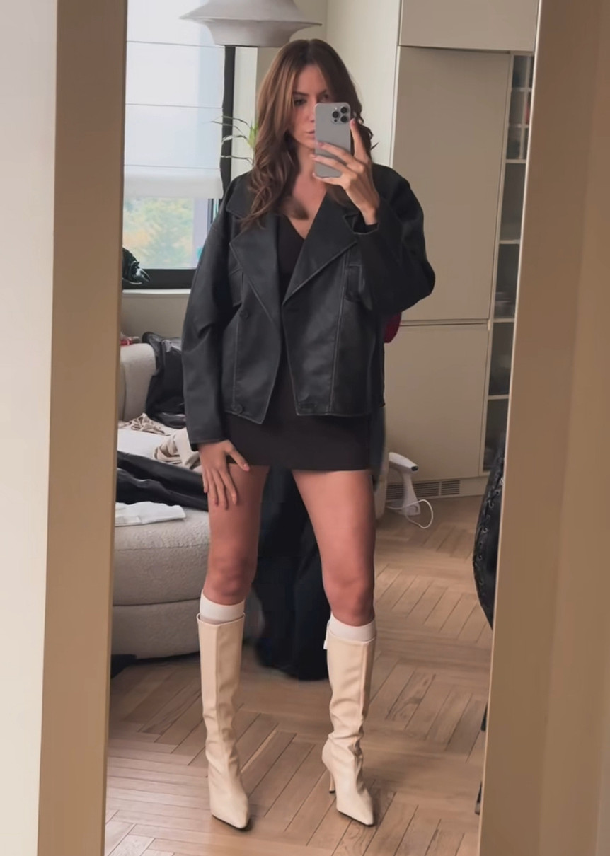 Нікітюк у мінісукні та шкірянці блиснула стрункими ніжками