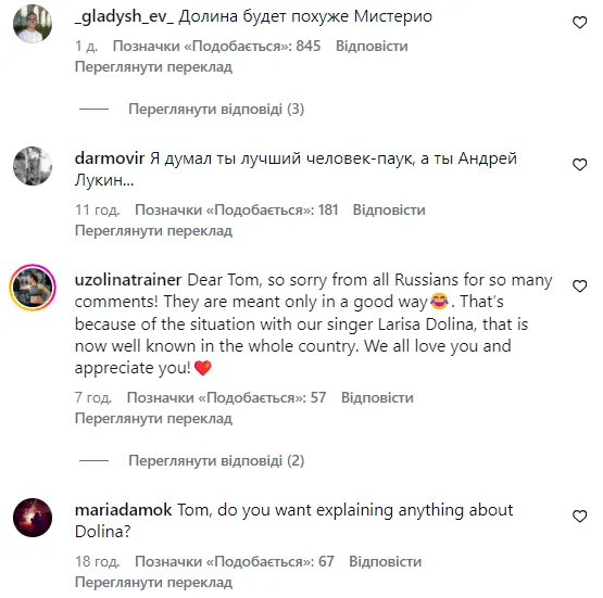 Російські користувачі масово атакували сторінки британського актора Тома Голланда в соцмережах після ефіру програми "Пусть говорят" зі зрадницею України Ларисою Доліною. Причиною стала гучна історія про багатомільйонне шахрайство, жертвою якого стала співачка, а також поява в телеефірі підробленого паспорта одного зі зловмисників із фотографією виконавця ролі Людини-павука.
