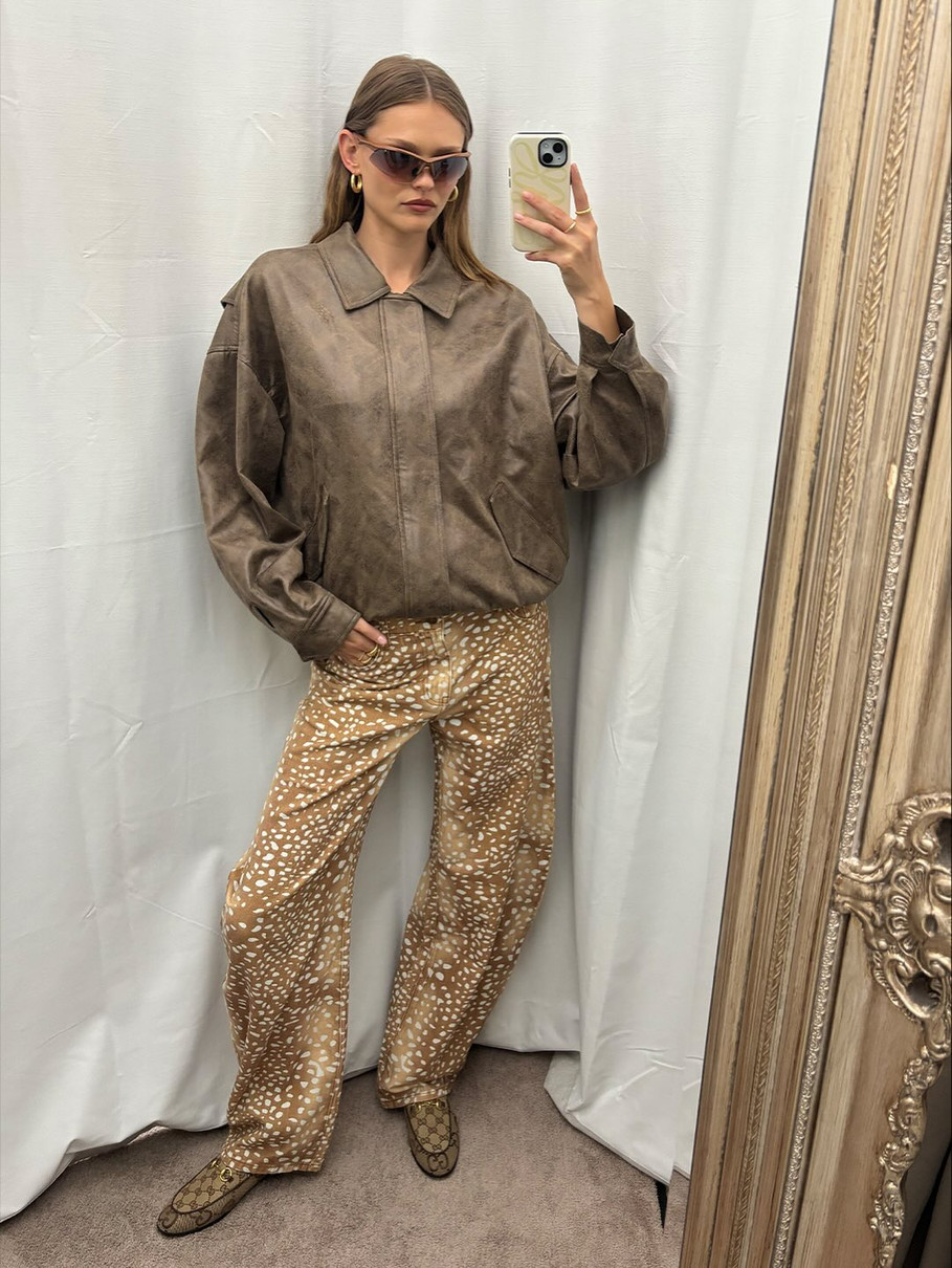 Якщо ви любите принти, то зима 2026 для вас, адже принтовані джинси актуальні як ніколи. Особливо Андре Тан виділяє принт "бембі", який виглядає доволі незвично та ніжно і поєднується майже зі всім.
