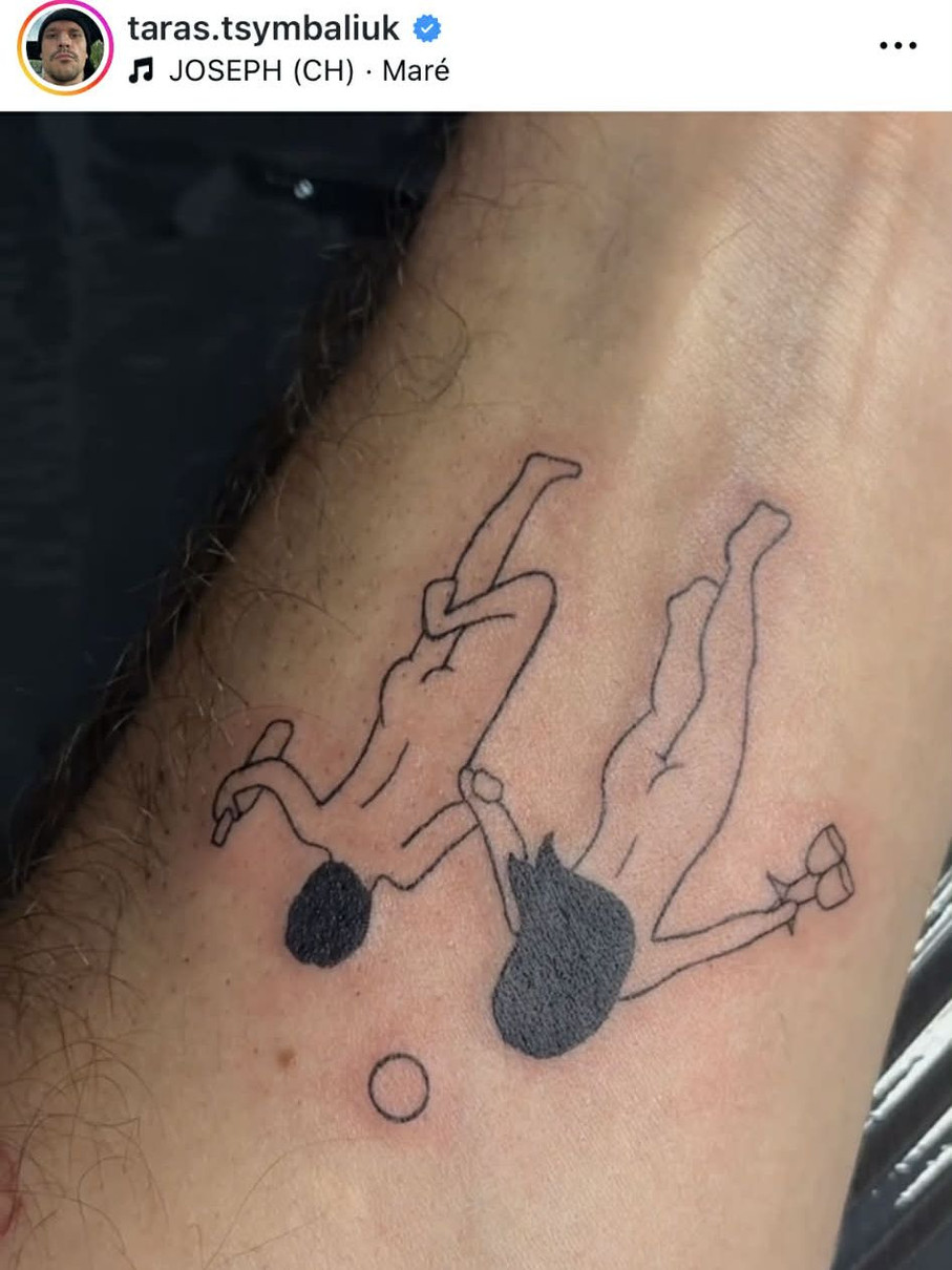 Ось така гола парочка з вином і келихами прикрашає тепер руку Тараса
