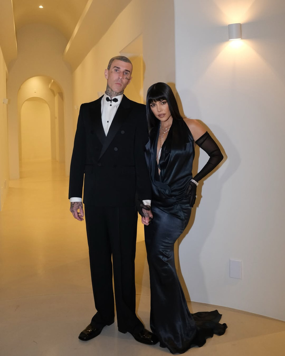 Кортні в атласному максі з декольте та ефектною перукою пришла на свято разом із чоловіком, барабанщиком гурту blink182 Тревісом Баркером