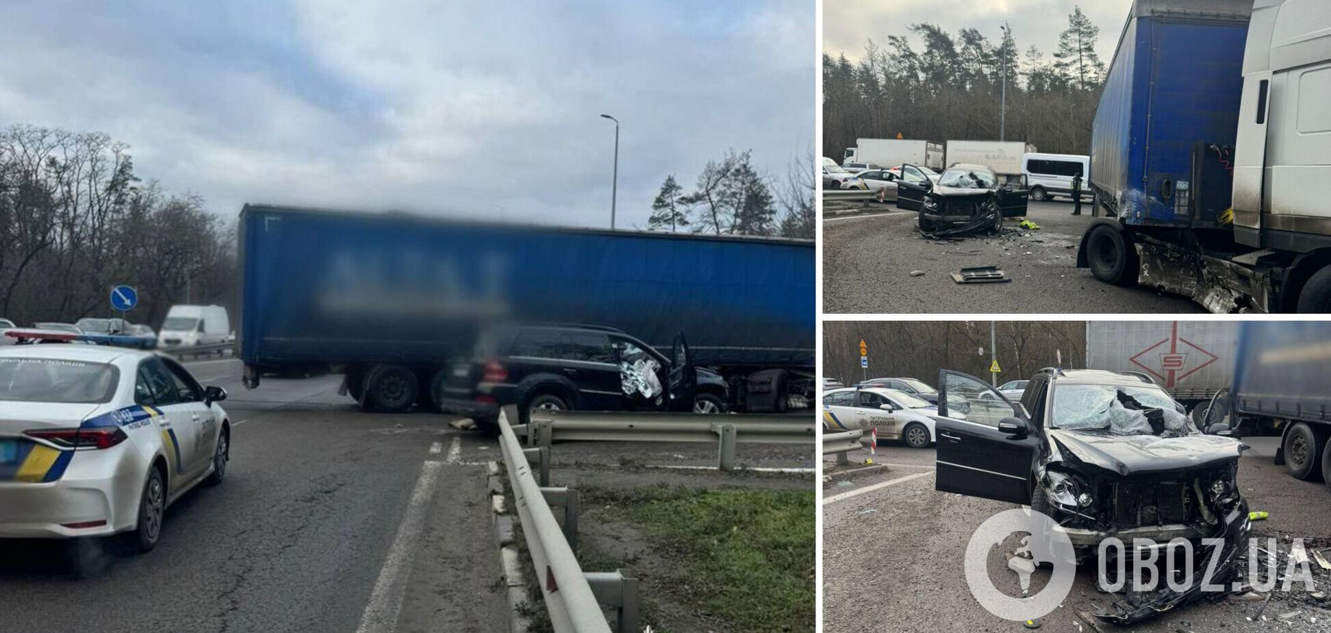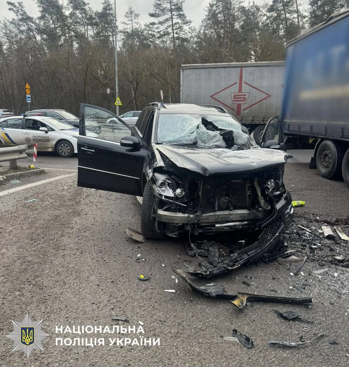 За словами правоохоронців, автопригода сталася у понеділок, 22 грудня, близько 9:00 ранку на столичному Берестейському шосе. Попередньо встановлено, що водій вантажного автомобіля DAF під час виконання маневру розвороту у напрямку міста Житомир не надав перевагу у русі та зіткнувся із автомобілем Mercedes, який рухався у зустрічному напрямку.