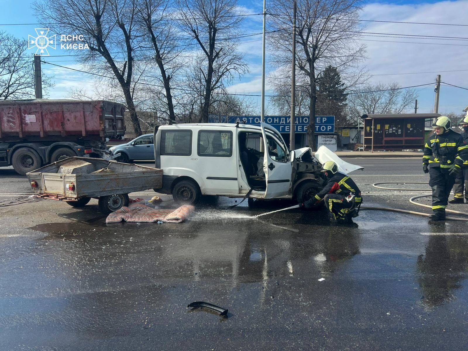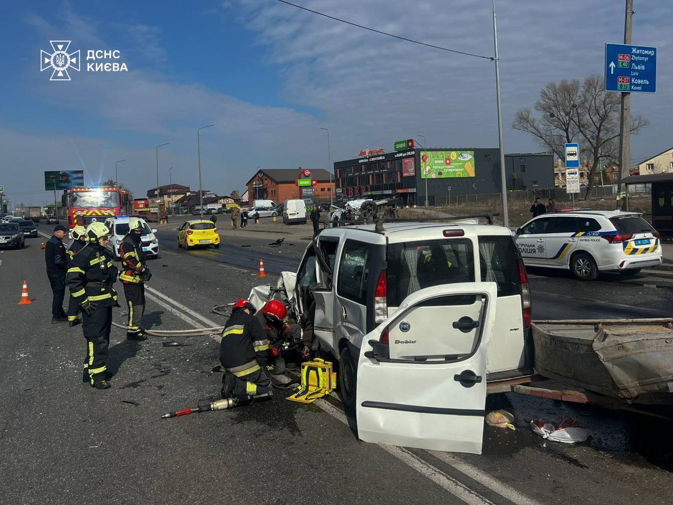 У пресслужбі ДСНС Києва уточнили, що внаслідок ДТП загинув водій легкового автомобіля Fiat. Рятувальники деблокували тіло загиблого за допомогою гідравлічного інструмента.