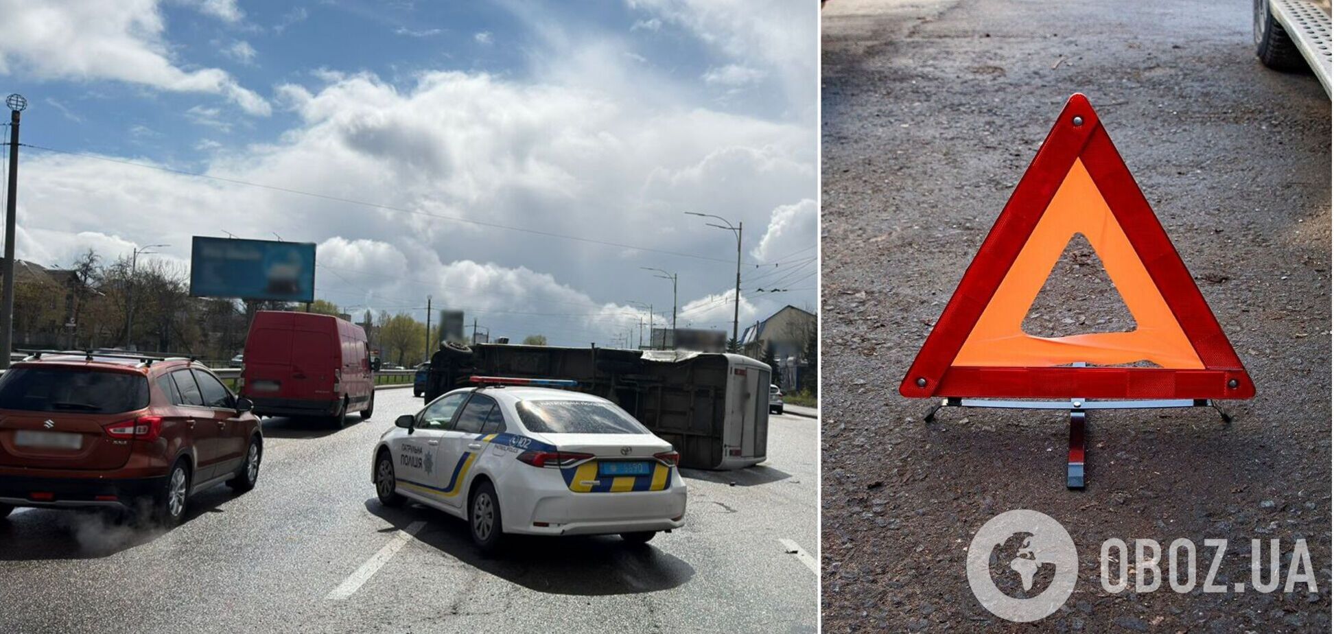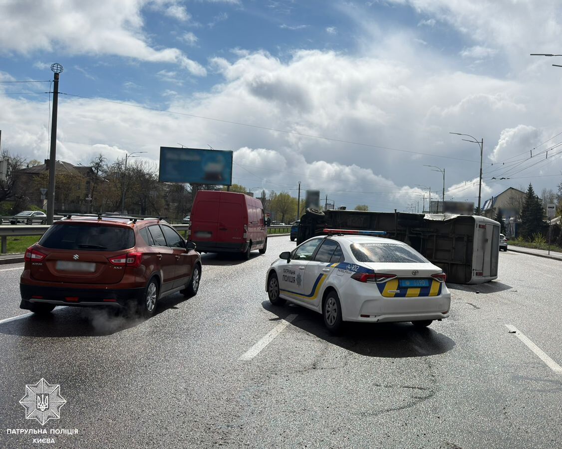У Києві в суботу, 18 квітня, внаслідок ДТП на Кільцевій дорозі перекинувся мікроавтобус. Через це на цій ділянці дороги утворився затор.