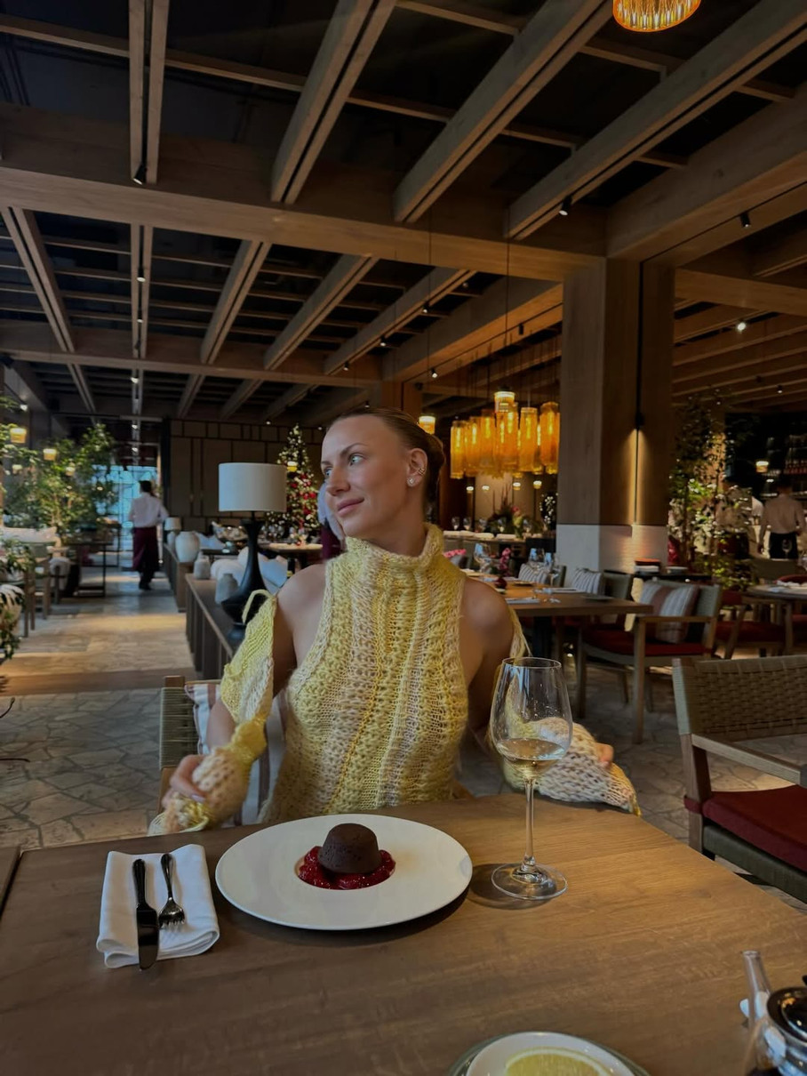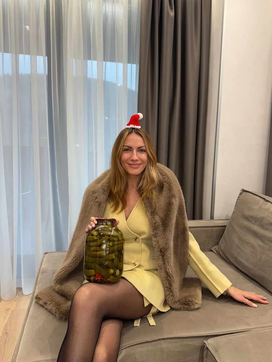 Окрім того, що зірка посвітила довжелезними ногами в купальнику, вона ще й зазнімкувалася коло ялинки, у ресторані, у чані та похизувалася величезною банкою з солоними огірками, якій можна лише позаздрити.
