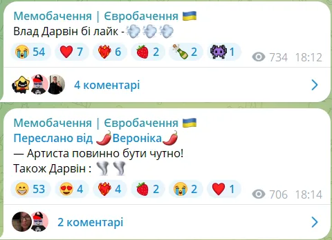 У мережі над цим також почали жартувати. У Telegram гумористичного каналу про Євробачення "Мемобачення" написали: "Влад Дарвін бі лайк – дихання (емодзі вітру)".