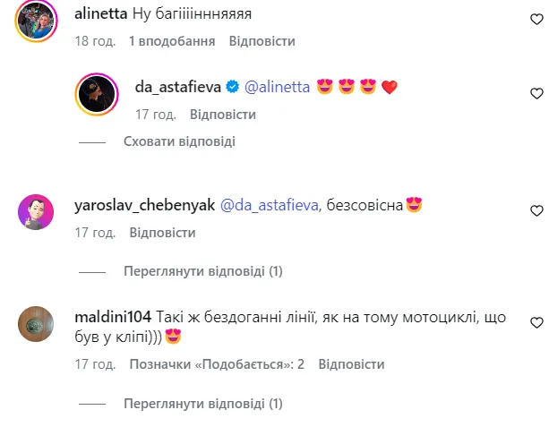 У коментарях під фото підписники залишили низку емоційних відгуків. Зокрема, користувачі писали: