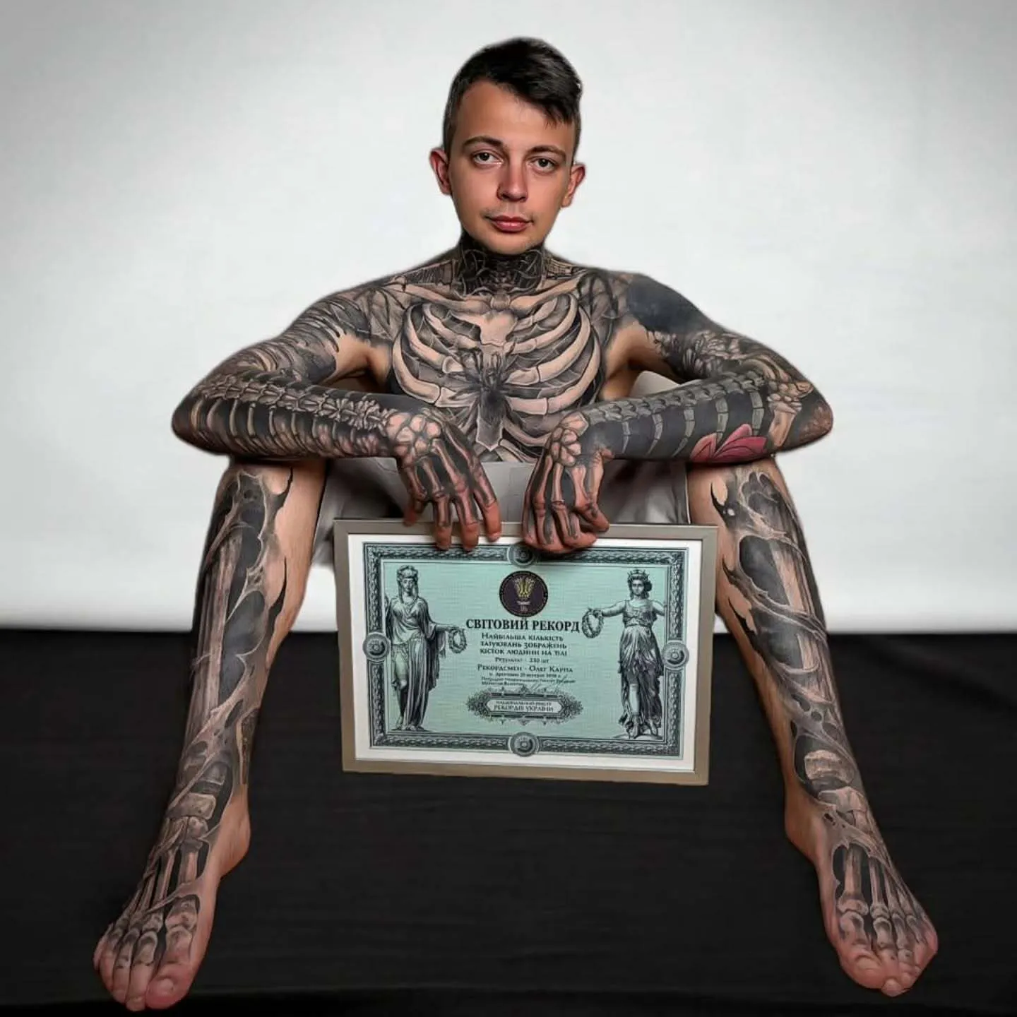 28-річний танатопрактик Олег Карпа з Дрогобича встановив світовий рекорд за кількістю татуювань у вигляді кісток на тілі, перевершивши досягнення відомого боді-арт персонажа Zombie Boy (Рік Дженест). На тілі українця зафіксували 230 татуювань (у тілі дорослої людини переважно 206 кісток), які відтворюють анатомічну будову людського скелета.