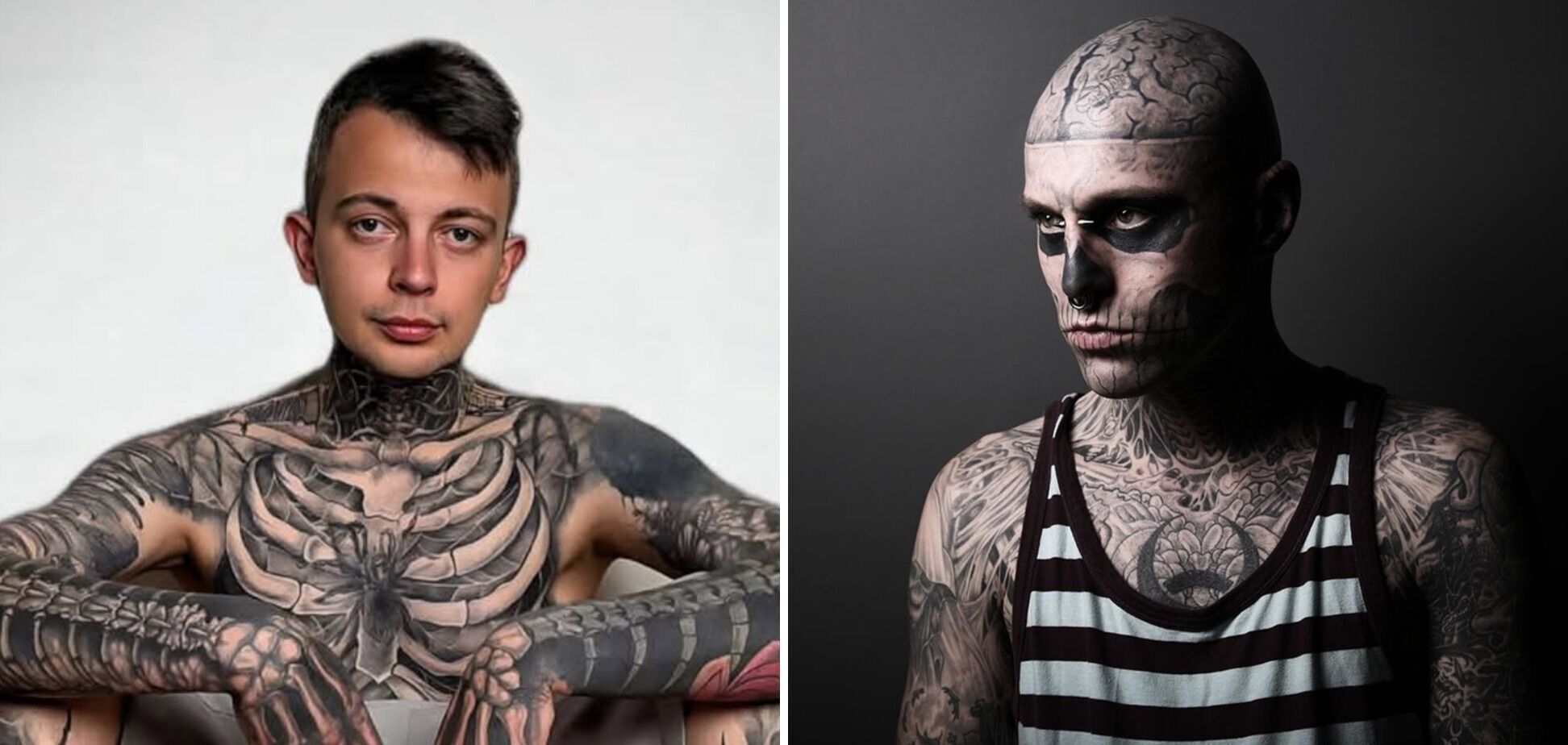 Варто зазначити, що, для порівняння, канадець Рік Дженест, відомий як Zombie Boy, двічі потрапляв до Книги рекордів Гіннесса завдяки татуюванням у вигляді скелета. Він помер у 2018 році в Монреалі.