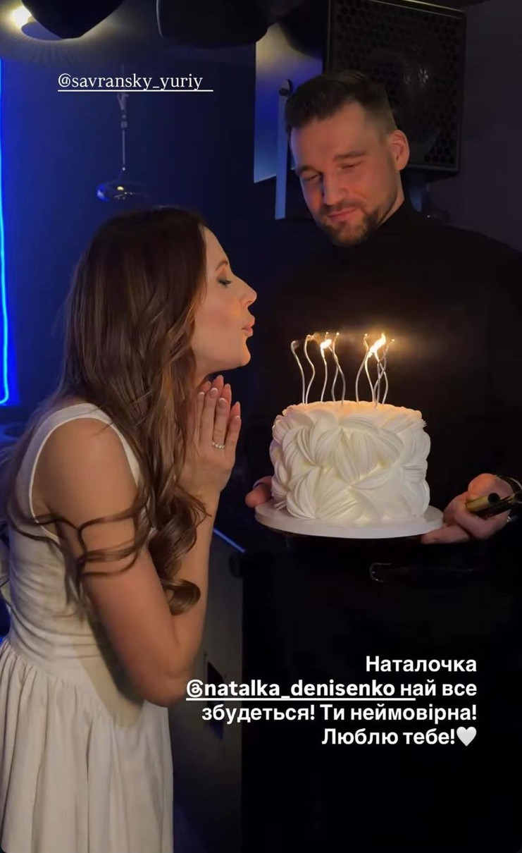 Манекенник Юрій Савранський не лише публічно в мережі привітав кохану, а й тримав святковий торт, поки вона задувала на ньому свічки, загадуючи бажання.