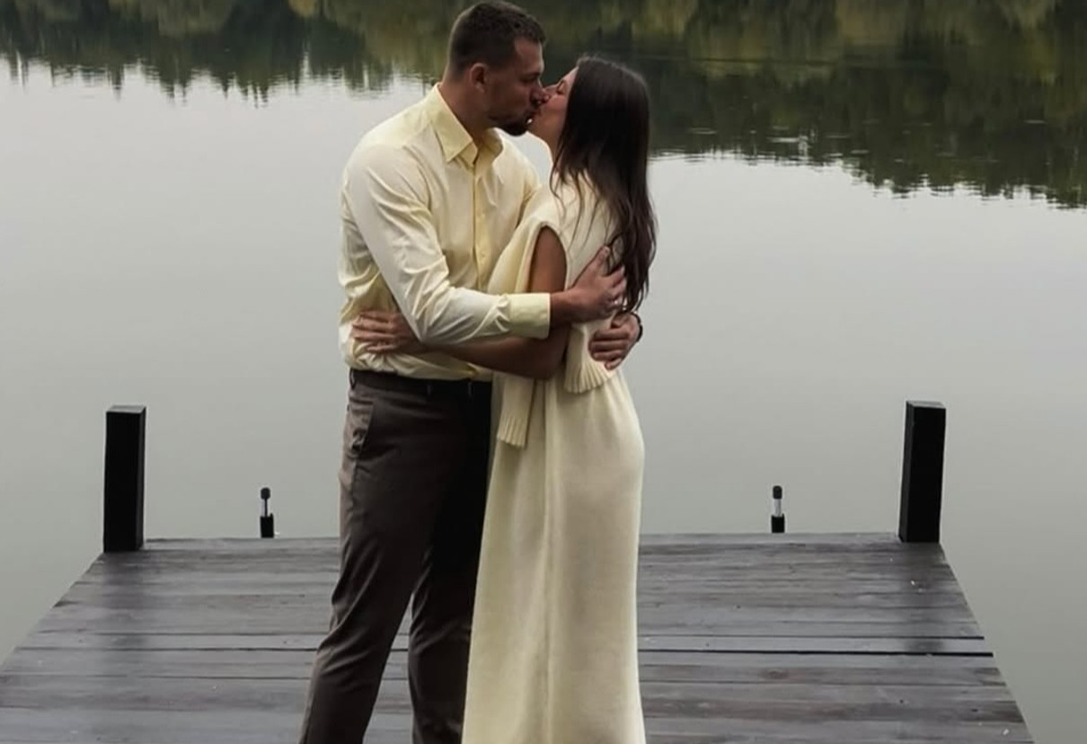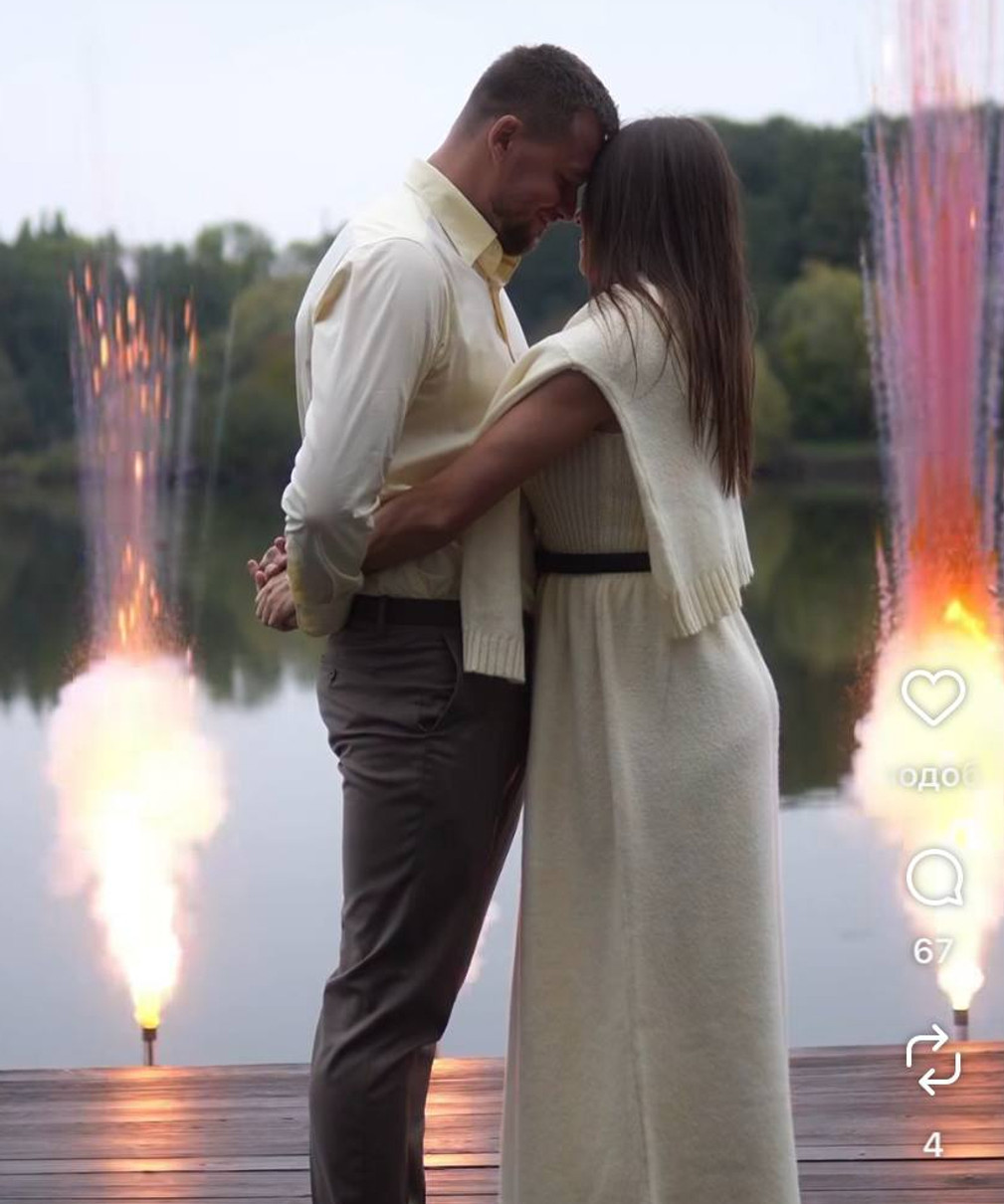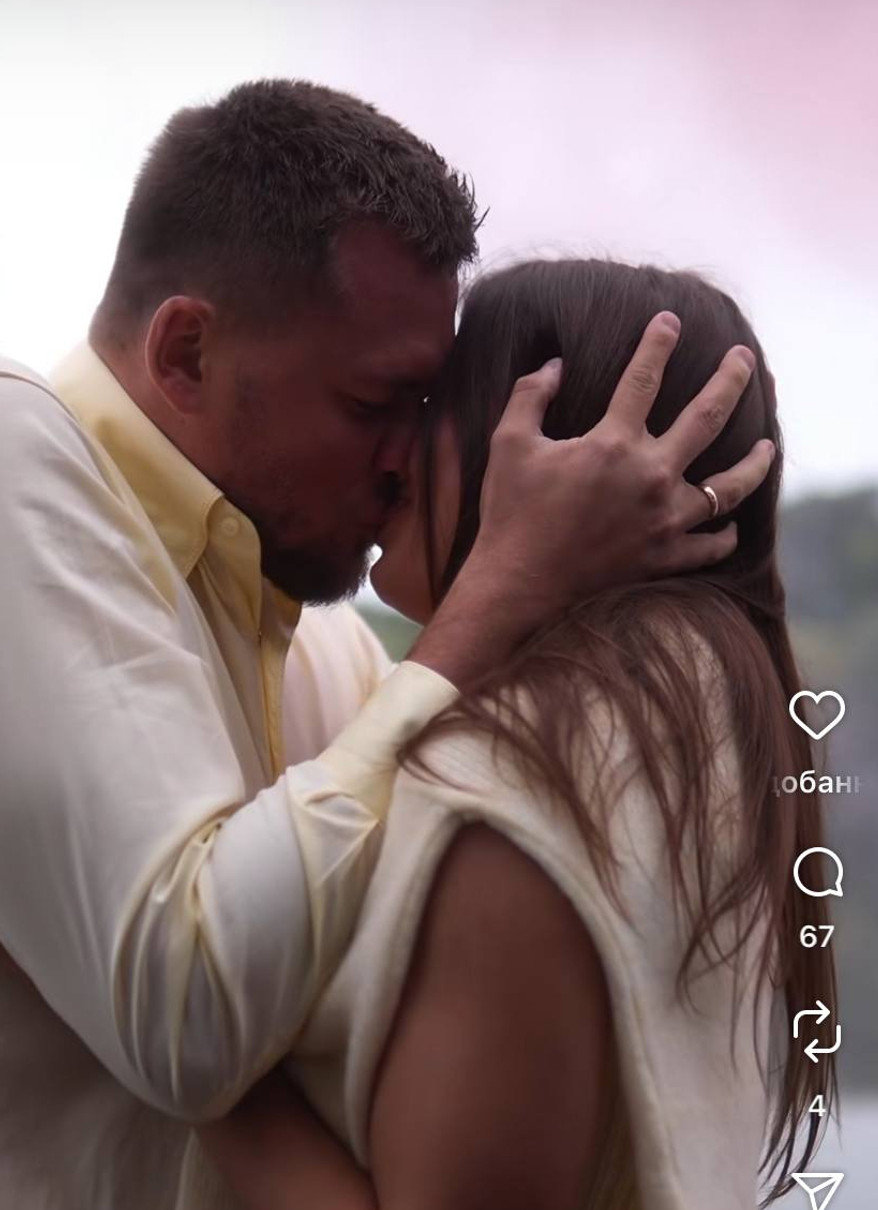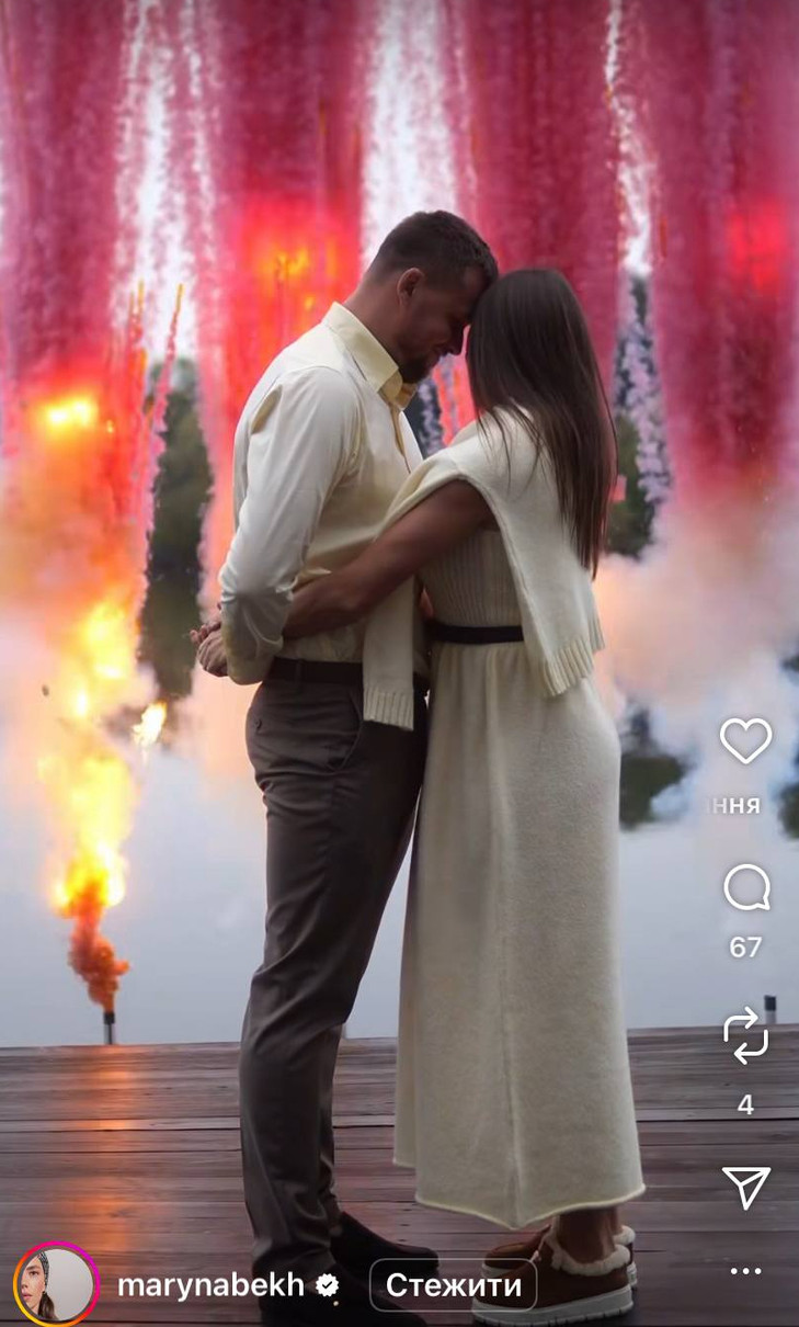 На кадрах Марина та Михайло стоять на причалі, а позаду них "вибухає" рожевий дим. У спортсменів народиться донька.