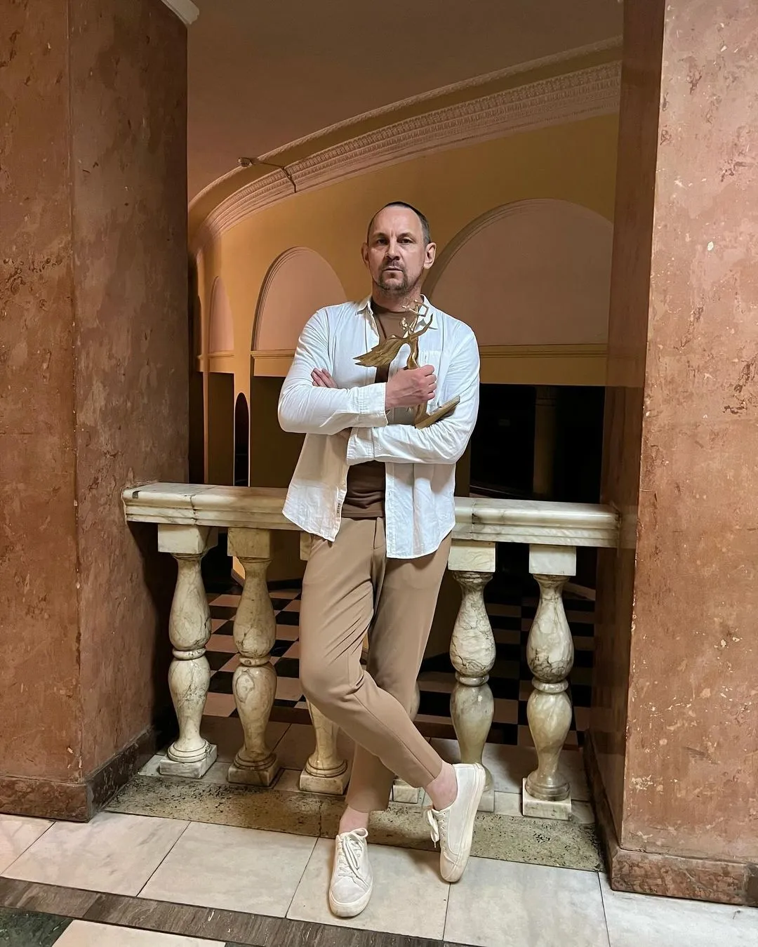 Також артист розповів, що його син має офіцерське звання. Сам Дмитро іронічно згадує, що раніше навіть не уявляв себе у війську.
