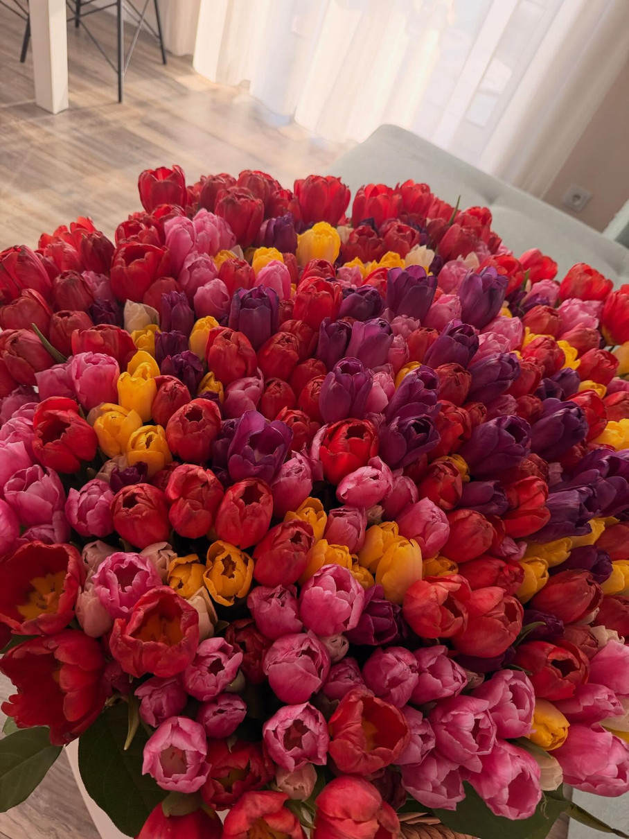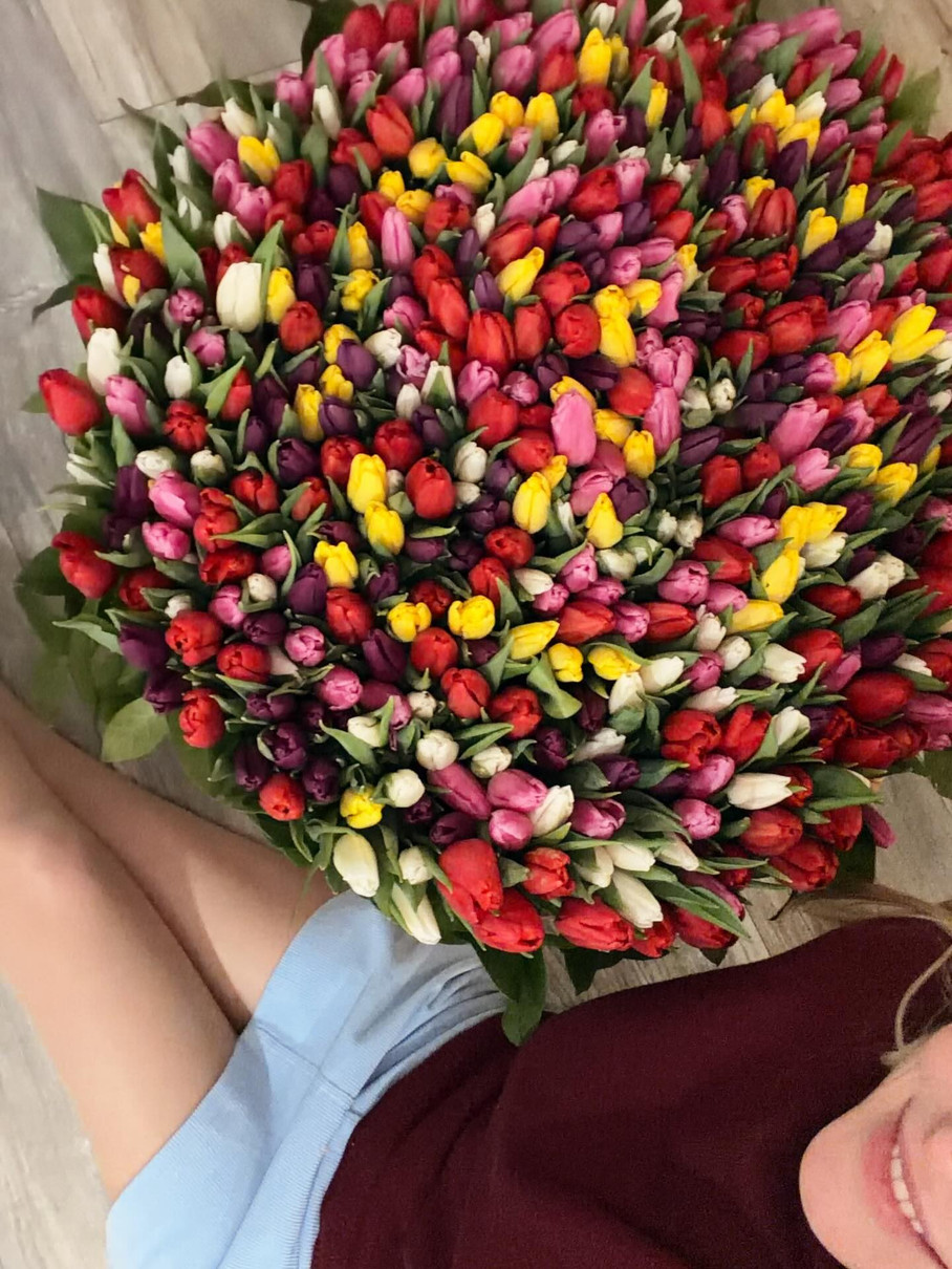 Інакше хто міг подарувати зірці гігантський букет різнокольороивих тюльпанів, яким вона похвалилася в Instagram.