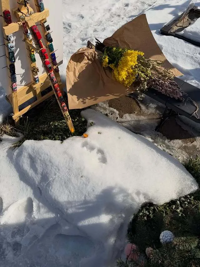 В Instagram Мотрич опублікувала серію світлин, зроблених біля хреста з іменем актора та його портретом у військовій формі. Могила вкрита снігом, довкола встановлені українські прапори, а поруч – лампадки та живі квіти, які Катерина принесла у той день на могилу, аби вшанувати пам'ять коханого.