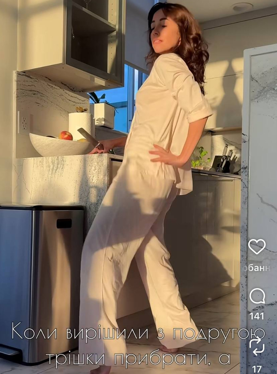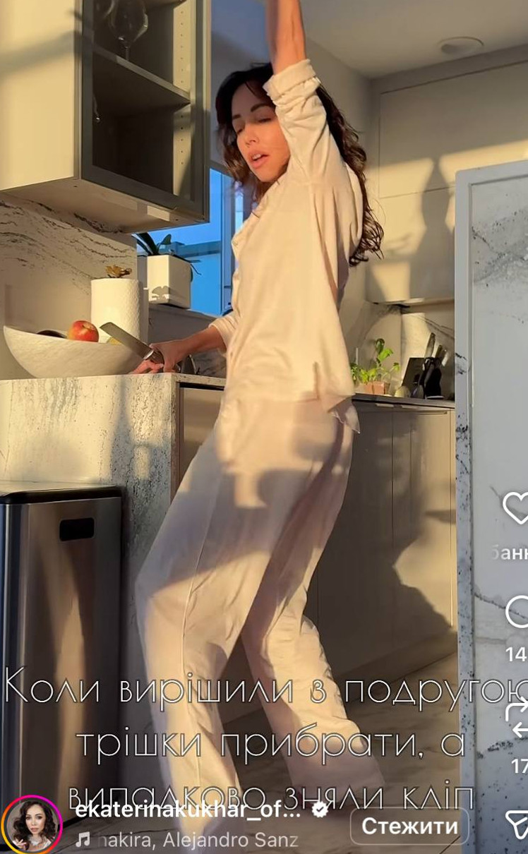 "Коли вирішили з подругою трішки прибрати, а випадково зняли кліп. Іноді достатньо музики і своїх людей поруч!" - пожартувала Катерина.