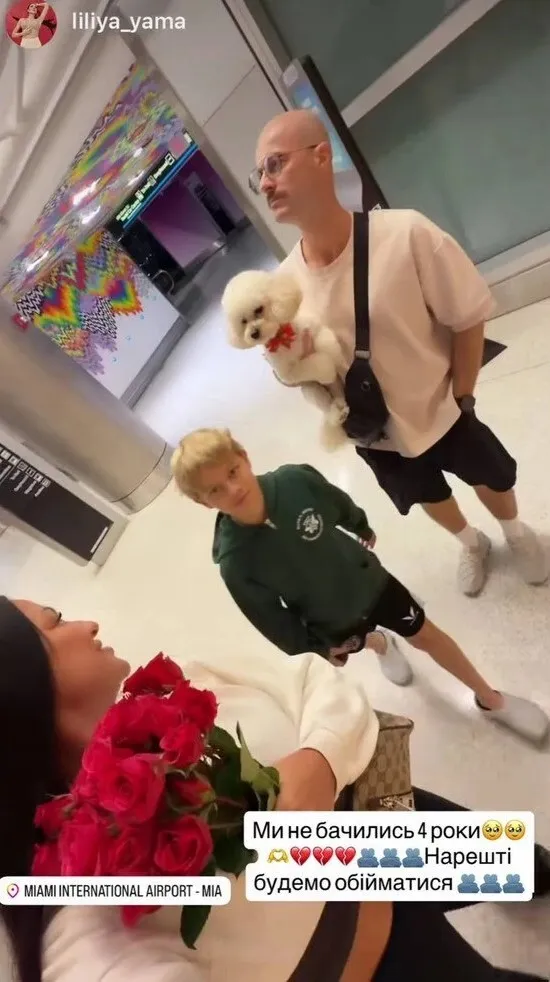 На оприлюднених кадрах зафіксовано момент зустрічі в аеропорту: Влад Яма одразу обіймає маму – Любов Миколаївну. Його дружина Лілія зустріла свекра Миколу Петровича та свекруху з букетом квітів. Разом із подружжям був і їхній син Леон, який після тривалої розлуки вперше побачив бабусю й дідуся наживо.