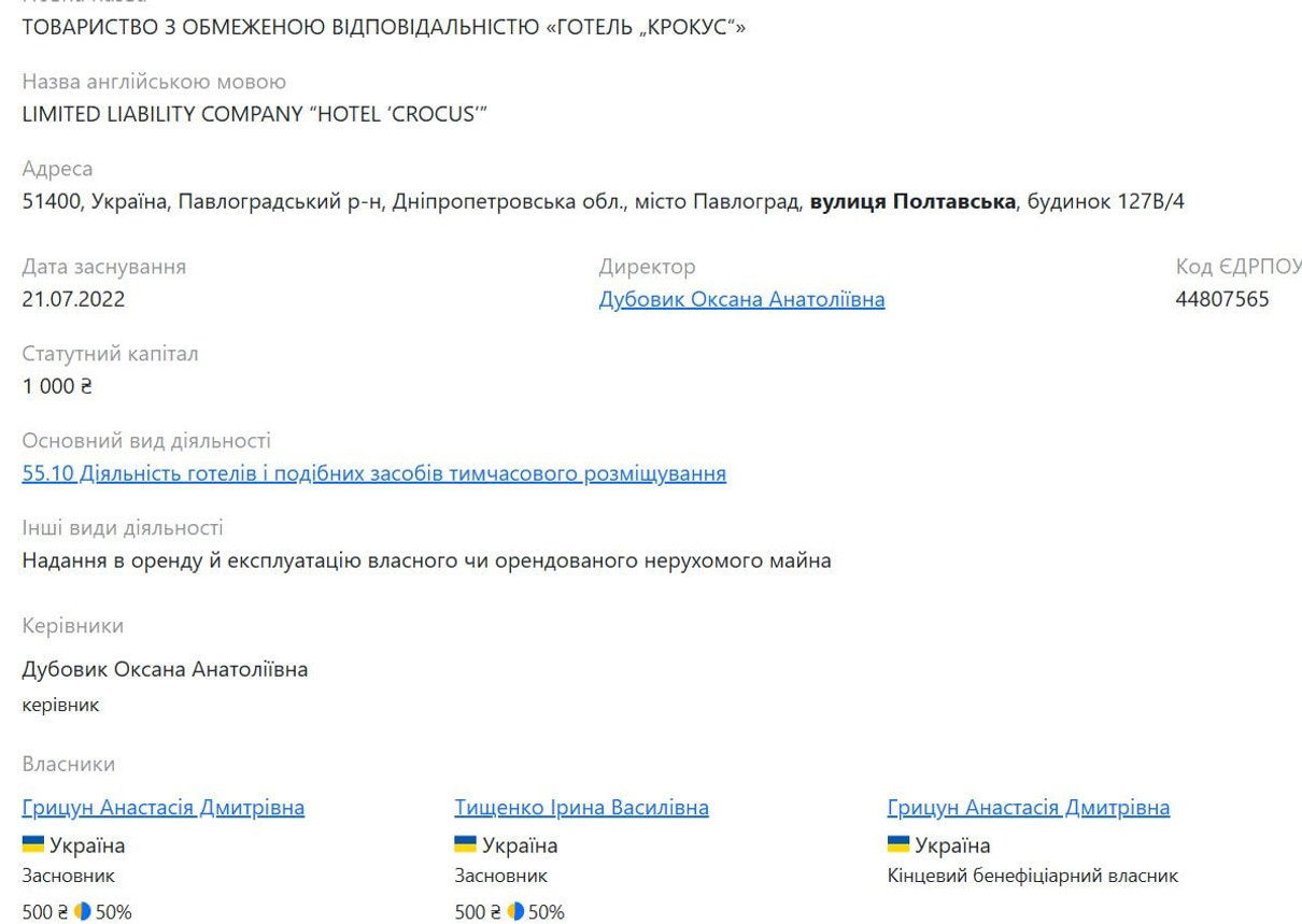 Також стало відомо, що сама співачка є співвласницею готелю "Крокус" в Павлограді, який, як пишуть у мережі, її родина нібито отримала за допомогою шантажу та хабарів.