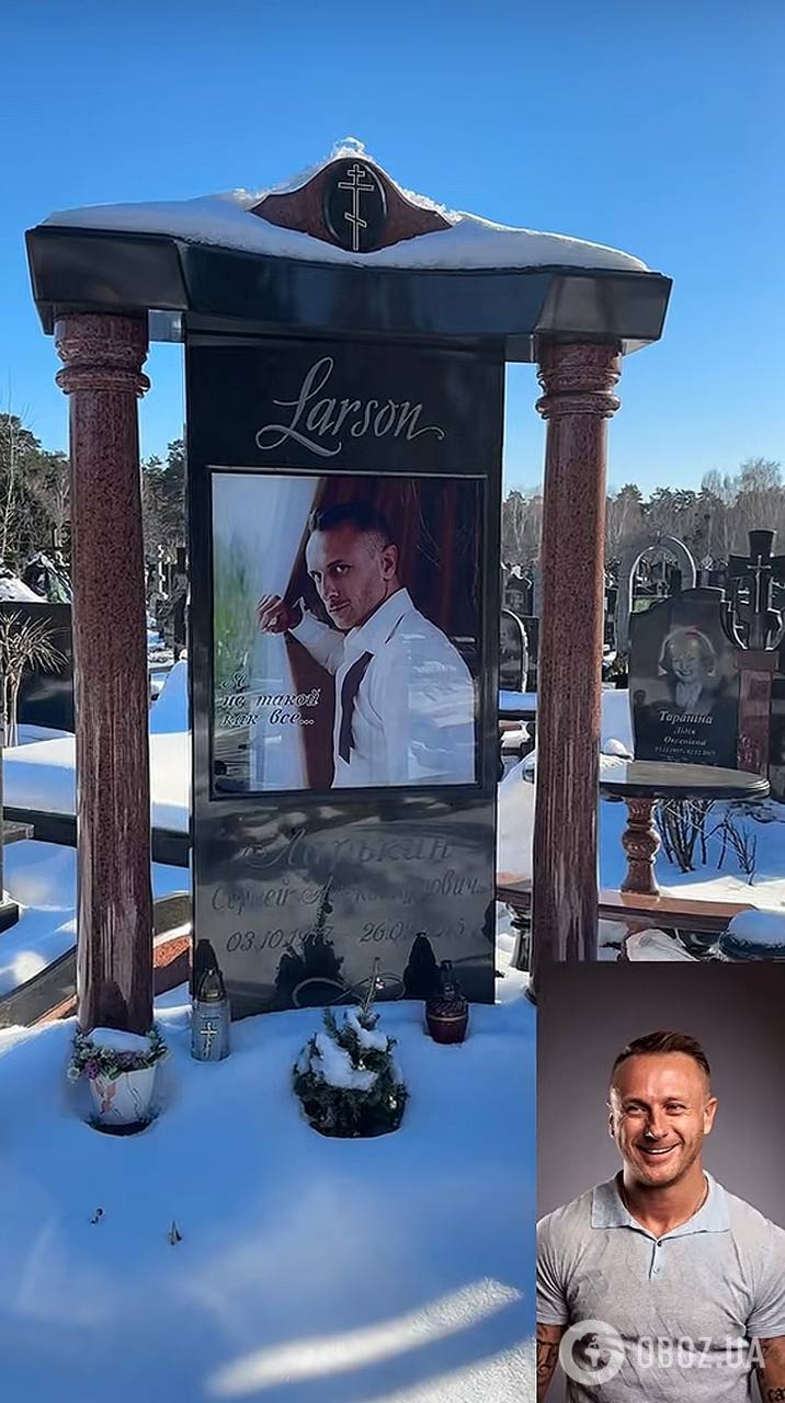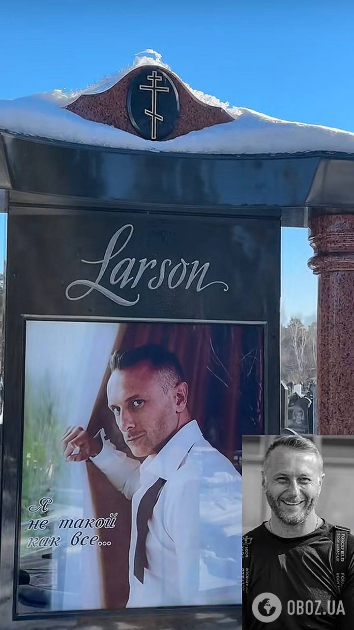 На могилі виконавця розмістили пам'ятник, оточений двома масивними колонами. По центру надгробка розташовано велику світлину Ларсона, на якій вигравірувано символічний напис: "Я не такий, як усі...", а на верхній частині видніється його творчий псевдонім. Кадри з місця поховання артиста оприлюднили в соціальній мережі TikTok.