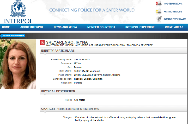 Однак пізніше стало відомо, що водійкою Caddillac Escalade, який збив Ларсона, була лікарка-спеціалістка Ірина Скляренко. Як зазначали очевидці, після скоєння аварії вона навіть не вийшла з авто, аби перевірити стан потерпілого, а дуже скоро покинула територію України. Інтерпол оголосив у розшук вбивцю артиста, однак вона зникла з радарів.