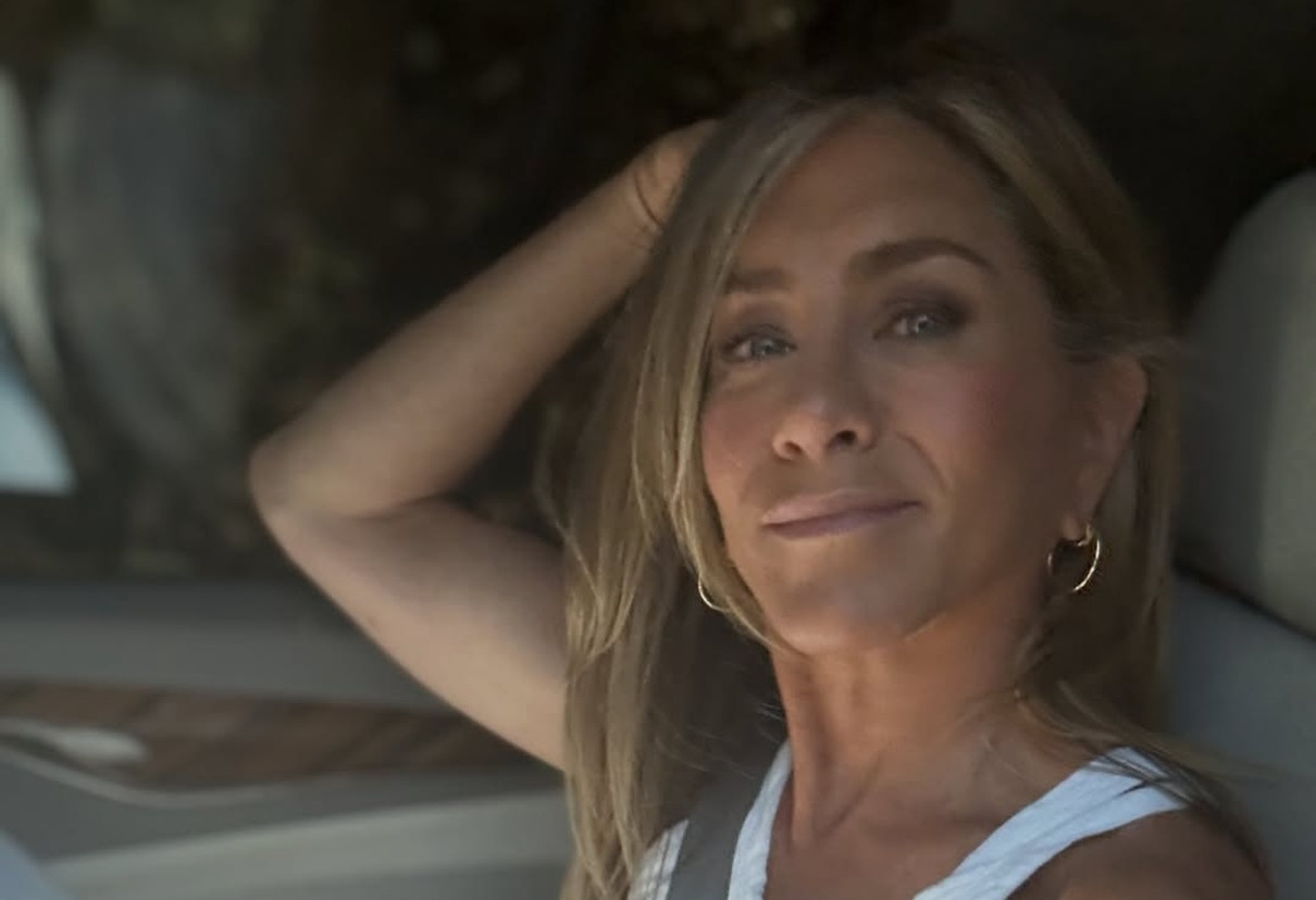 На поміч їй приходить 61-річна Кортні. Вона схиляється над подругою і звішує своє темне волосся так, щоби воно обрамляло лице Еністон.