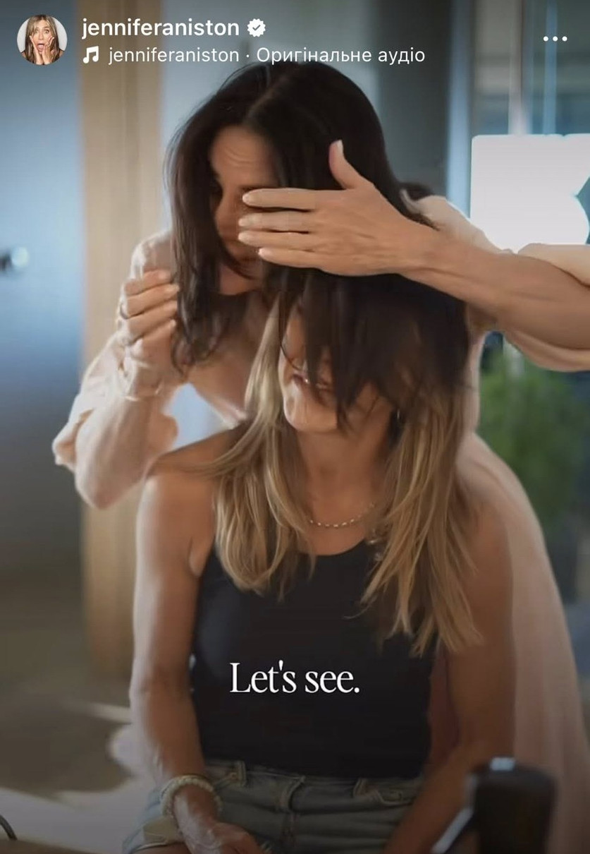 Еністон зняла відео для свого бренду продуктів із догляду за волоссям. Кокс їй допомогла