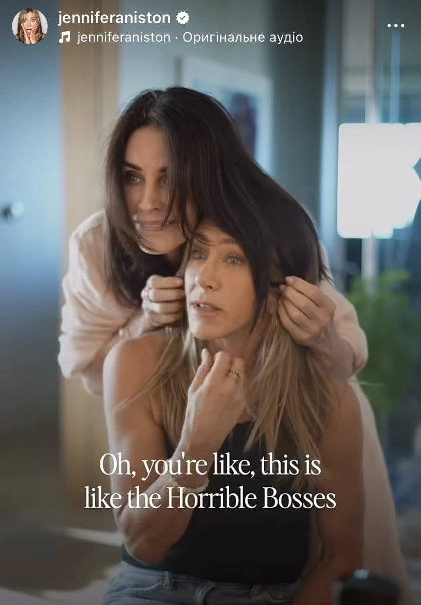 Американські акторки Кортні Кокс і Дженніфер Еністон, котрі є найкращими подружками не лише в серіалі "Друзі", а і в реальному житті, знялися разом у смішному відео.