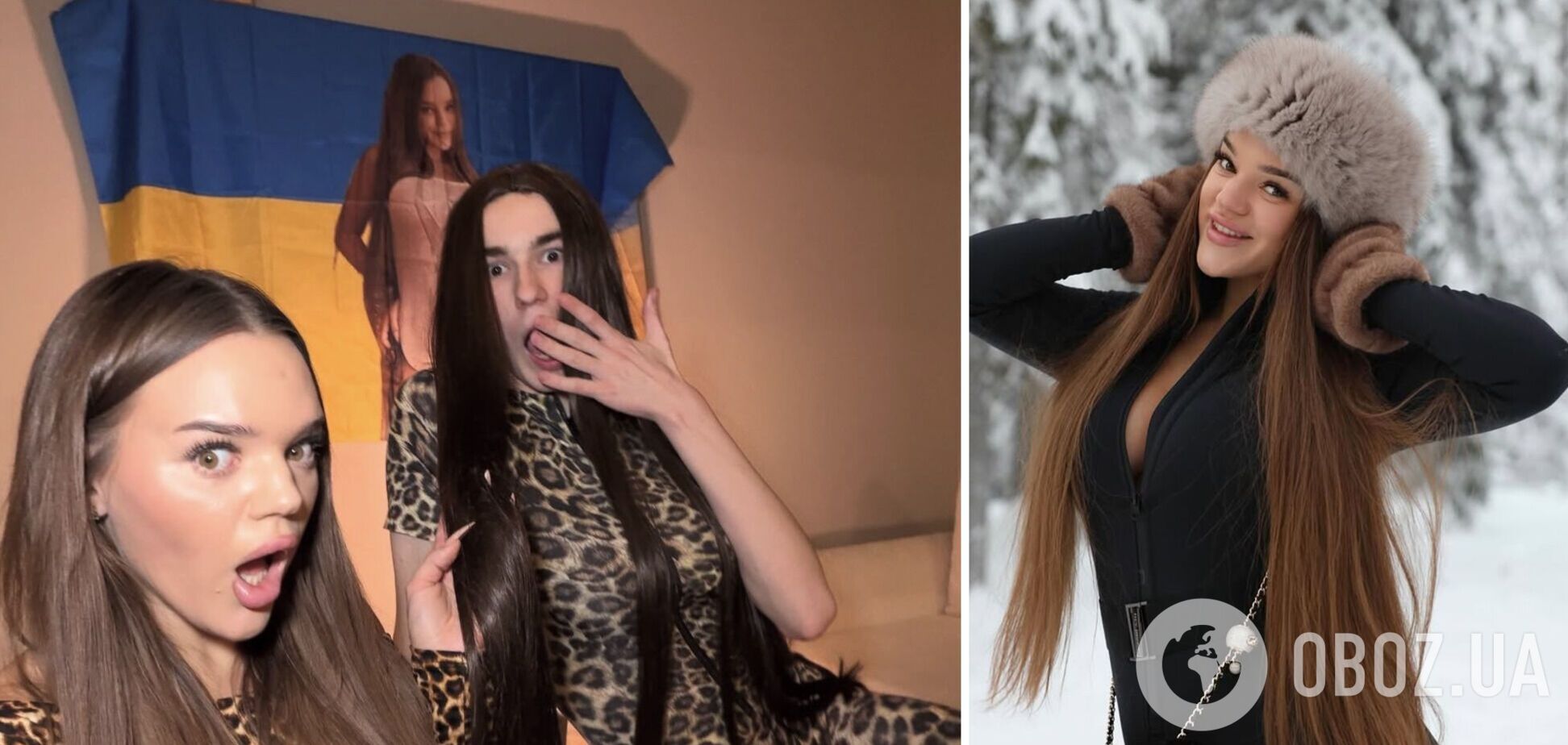 На другому плані кадру – блогер під нікомsmurfi.ik, одягнений у жіночий образ, який візуально відтворює саму Вербу. Саме він подарував цей прапор Вербі, який згодом став реквізитом для контенту.