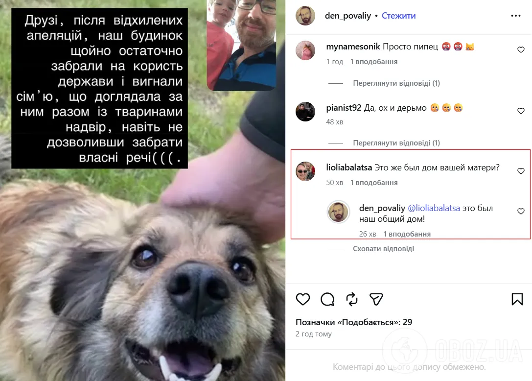 "Після відхилених апеляцій наш будинок сьогодні остаточно забрали на користь держави і вигнали сім'ю, яка доглядала за ним! Будинок, до речі, колись купила моя мама, потім ми його добудували, зробили ремонт і переїхали до мами жити! Будинок забрали не у мене, а у пенсіонерки, яка 80 років прожила в Україні і збиралася повернутися! Ну що ж! Так тому й бути! Дякую за все!" – заявила Повалій.