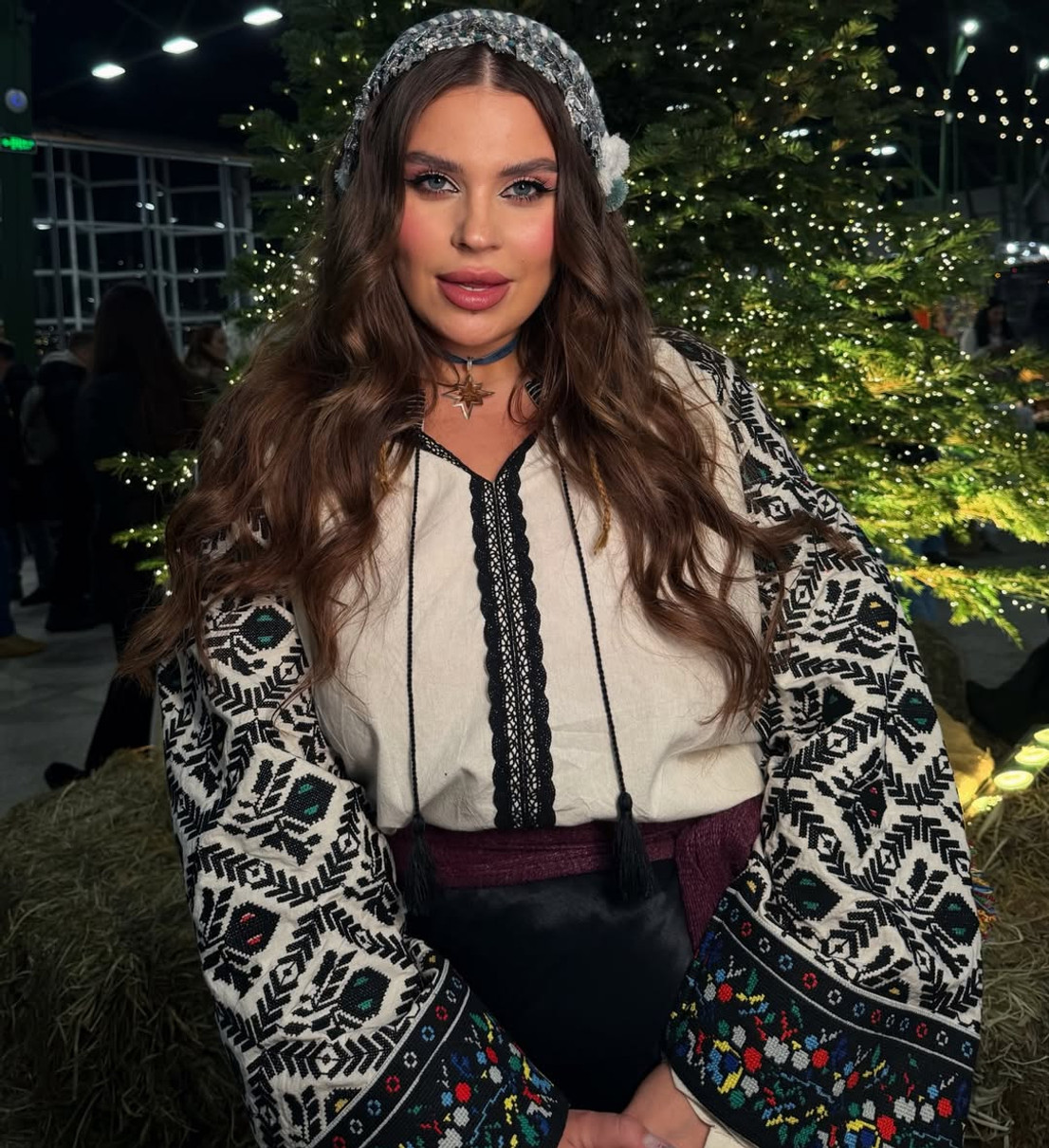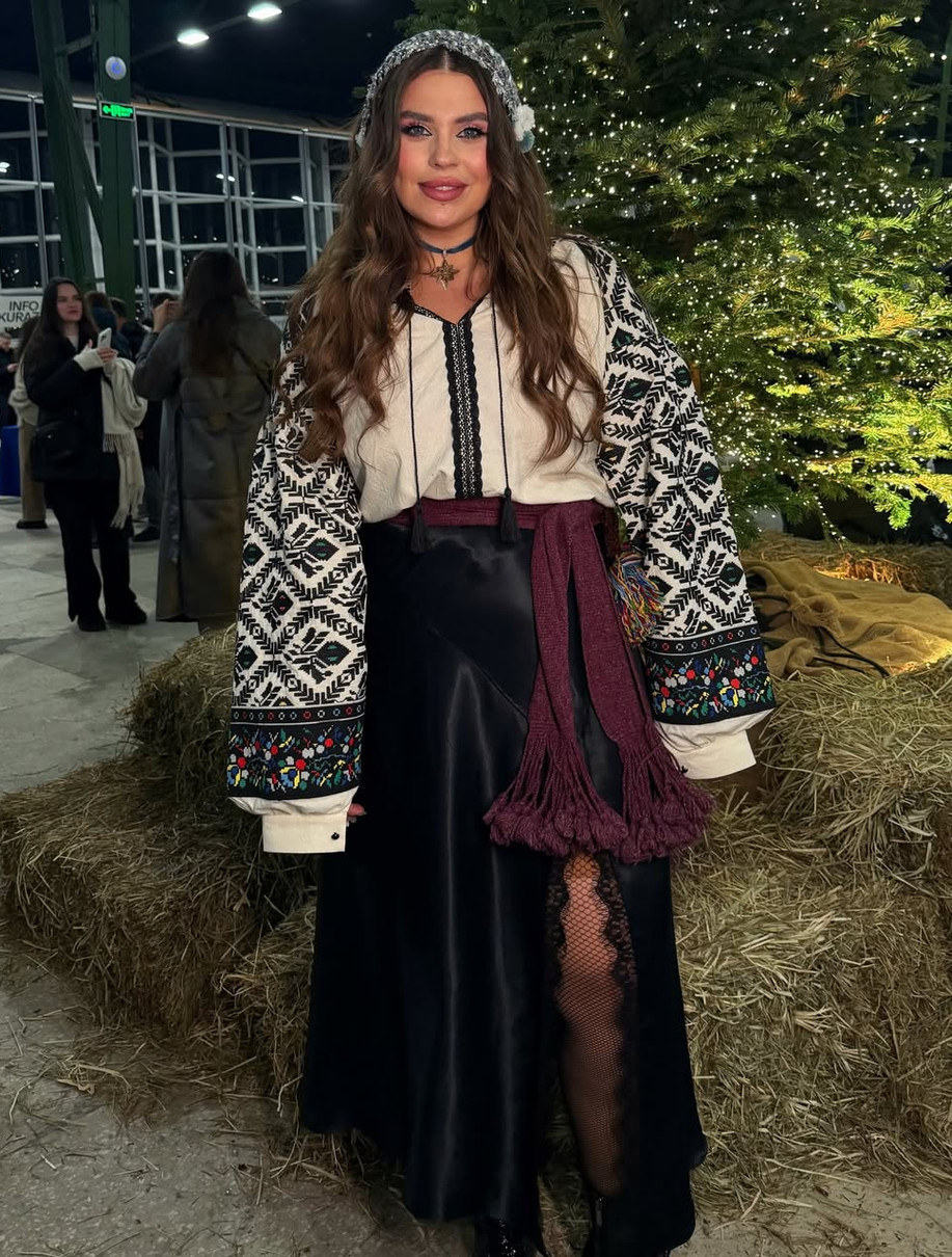 Виконавиця в традиційному вбранні й з кулоном у вигляді зірки пораділа святковій атмосфері
