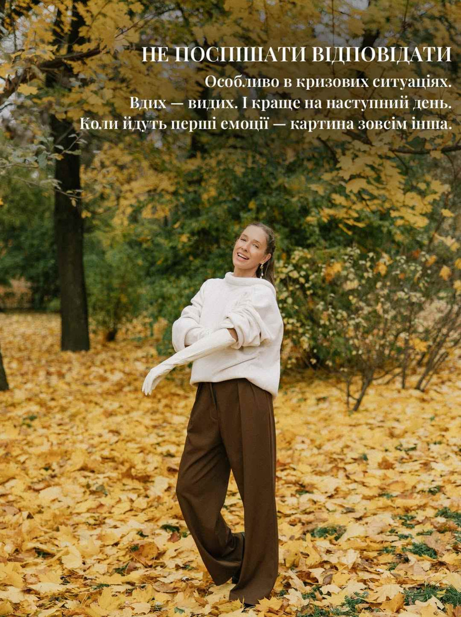"Особливо в кризових ситуаціях. Вдих - видих. І краще на наступний день. Коли йдуть перші емоції - картина зовсім інша", - пояснила вона.