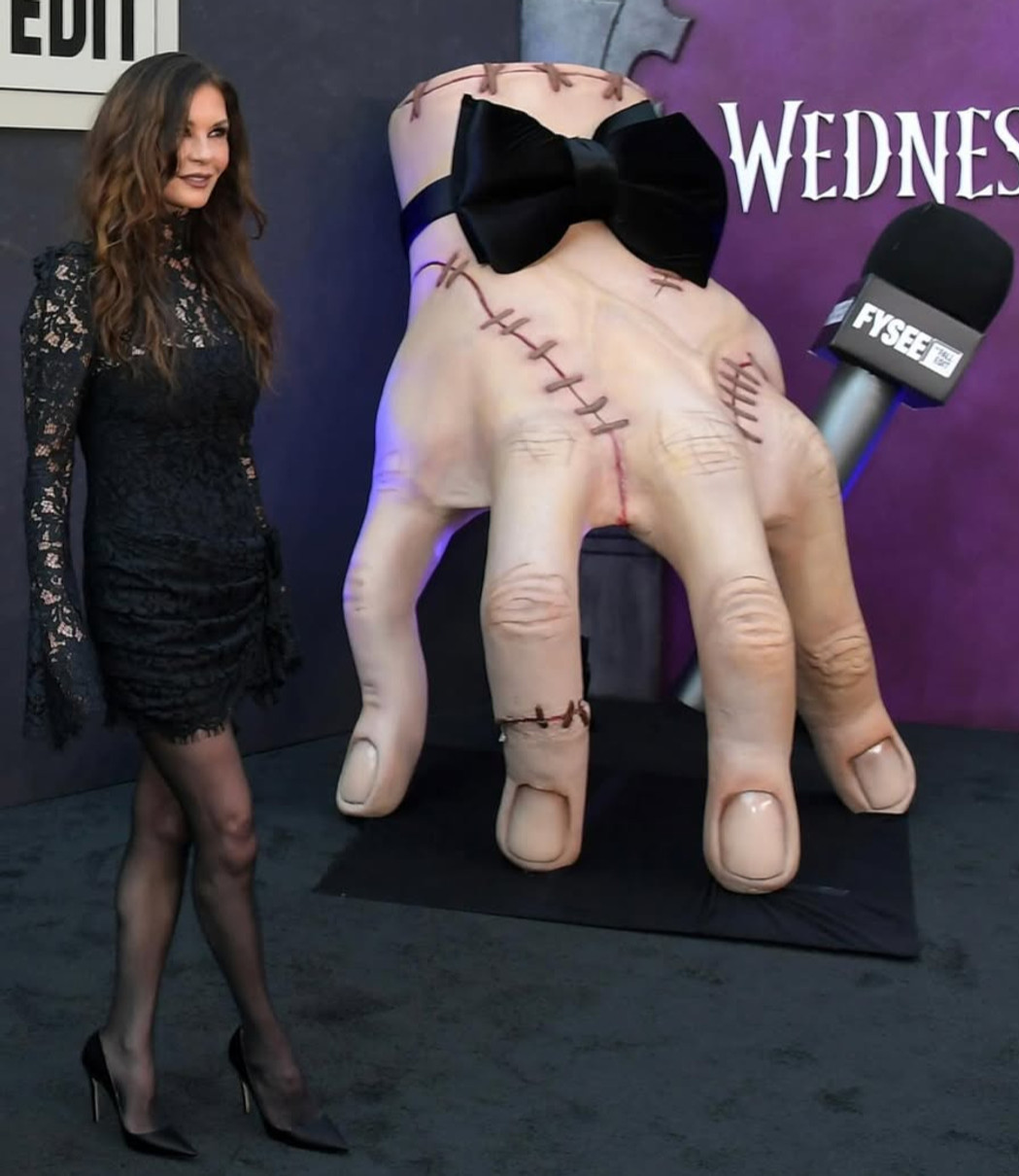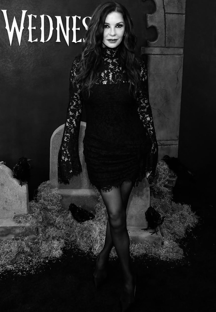 Зета-Джонс у напівпрозорому готичному міні з'явилась на хіднику Netflix. Фото 11 ноября 2025