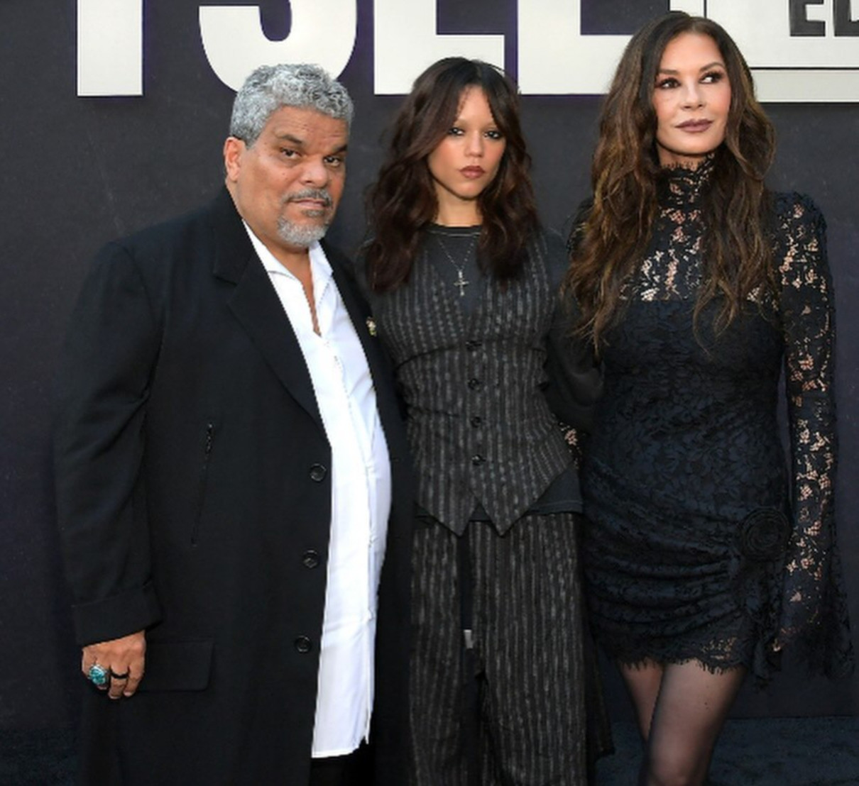 Зета-Джонс зі своїми колегами по серіалу, 69-річним Луїсом Гузманом та 22-річною Дженною Ортегою