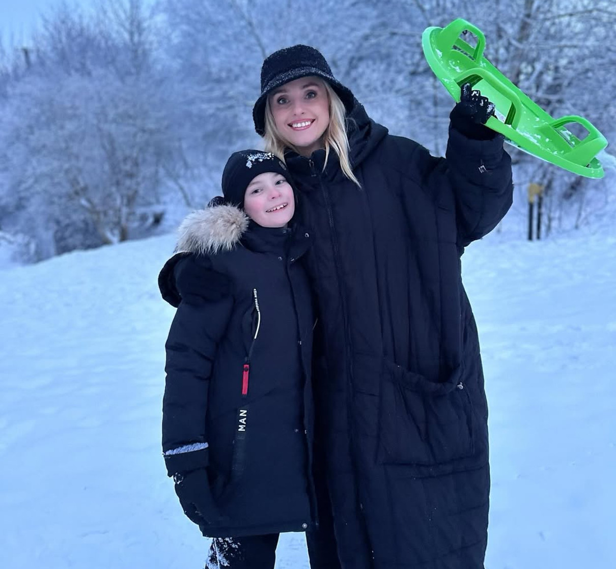 Ірина вирішила не втрачати шансу порадіти такій сніжній зимі, тож вивела свого молодшого сина кататися з гірки.