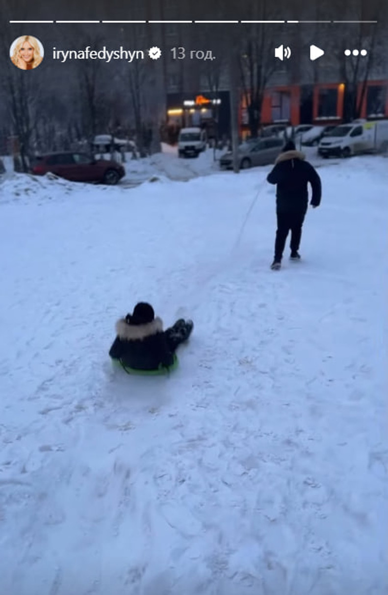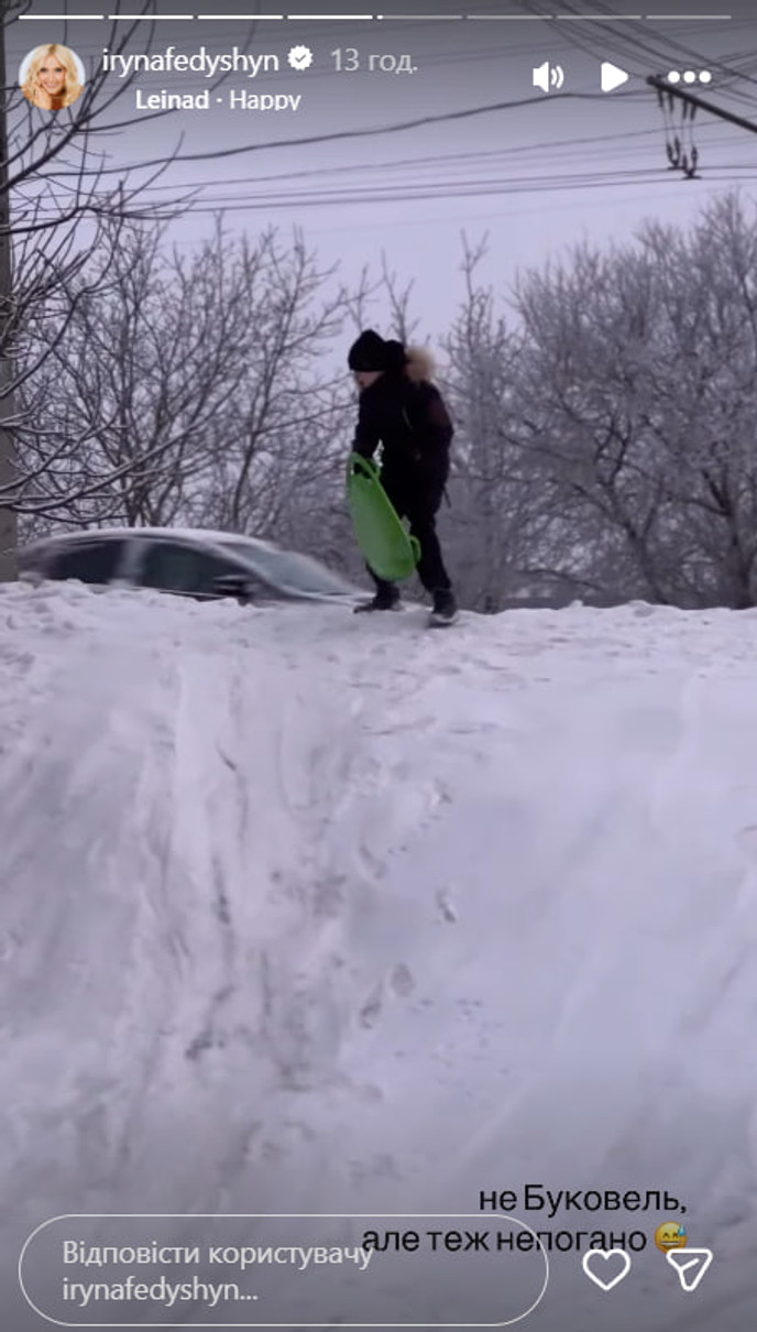 "Взяла Олежика, пішли кататися трохи на снігу. Ледве купили ту миску, щоб кататися, тому що все розкупили. Давно не було такої зими", - сказала Федишин.