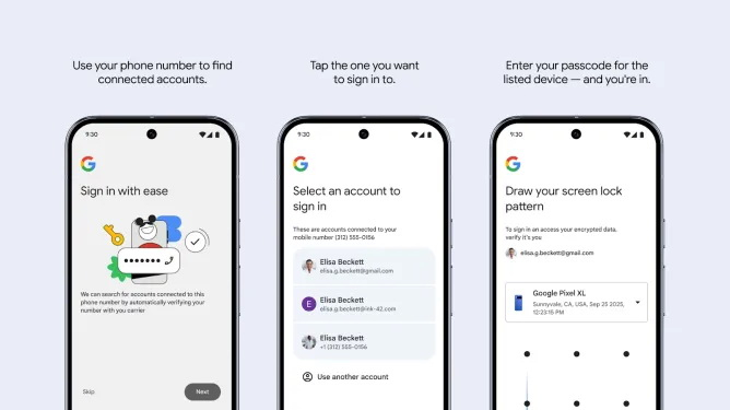 Google також додала новий метод відновлення доступу до облікового запису — вхід за номером мобільного телефону. Інструмент автоматично ідентифікує всі облікові записи, прив'язані до вказаного номера.