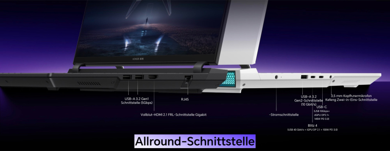 З них максимум 140 Вт припадає на відеокарту GeForce RTX 5070 Ti, решта споживає процесор Intel Core Ultra 9 290HX Plus. Honor оснастила ноутбук 16-дюймовою IPS-панеллю формату 16:10 з роздільною здатністю 2560 × 1600 пікселів, яскравістю 500 кд/м2 та частотою оновлення 300 Гц. За даними виробника, дисплей підтримує кольоровий простір DCI-P3. Ємність акумулятора ноутбука становить 92 Вт·год. Лептоп оснащений портами Thunderbolt 4 (USB-C), USB-C 3.2 Gen2, трьома USB-A, одним HDMI 2.1 та LAN.